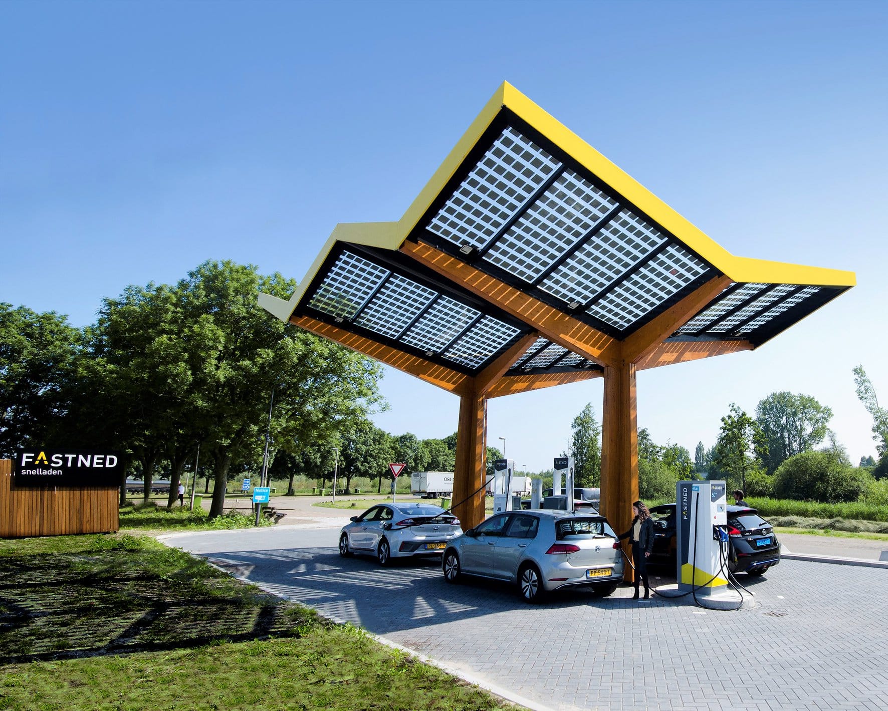 Fastned строит европейскую сеть быстрых зарядных станций, где все электромобили смогут заряжаться как можно быстрее. Для перехода к устойчивой электрической мобильности необходима сеть надежных и узнаваемых станций быстрой зарядки вдоль автомагистралей и в городах. На станции Fastned, из местных источников, поставляется 100% возобновляемая энергия солнца и ветра.
