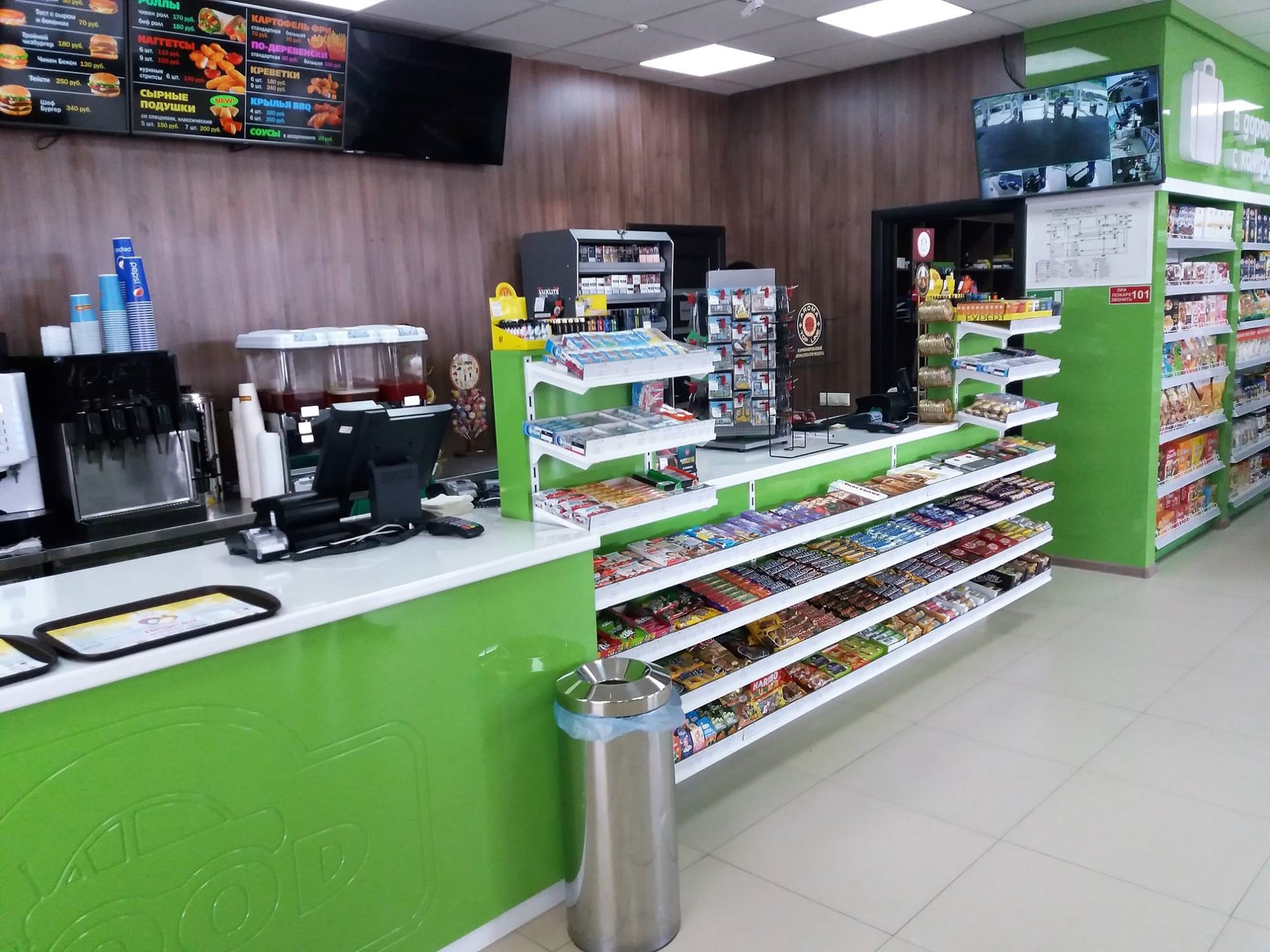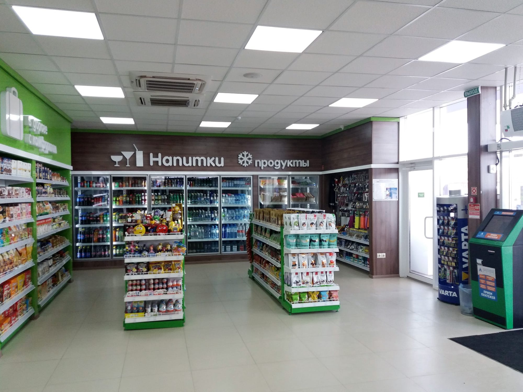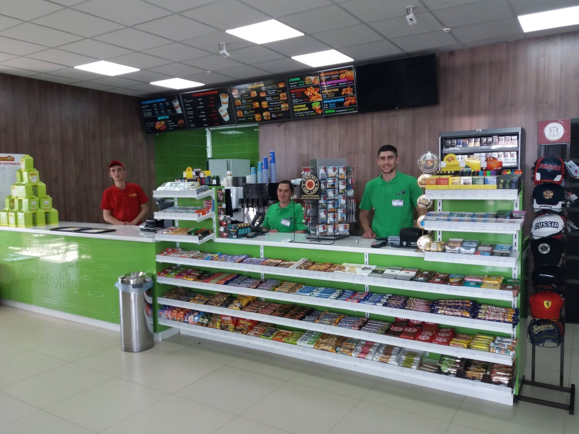 Для удобства посетителей магазин с широким ассортиментом товаров и кафе "АвтоФуд", где можно быстро перекусить фирменными бургерами, сендвичами, нагетсами, салатами. Установлен кофемодуль, позволяющий без очереди самостоятельно сделать свежесваренный кофе. Добавлены новые сервисы для семей с детьми - пеленальный столик, а также интерактивный детский уголок.