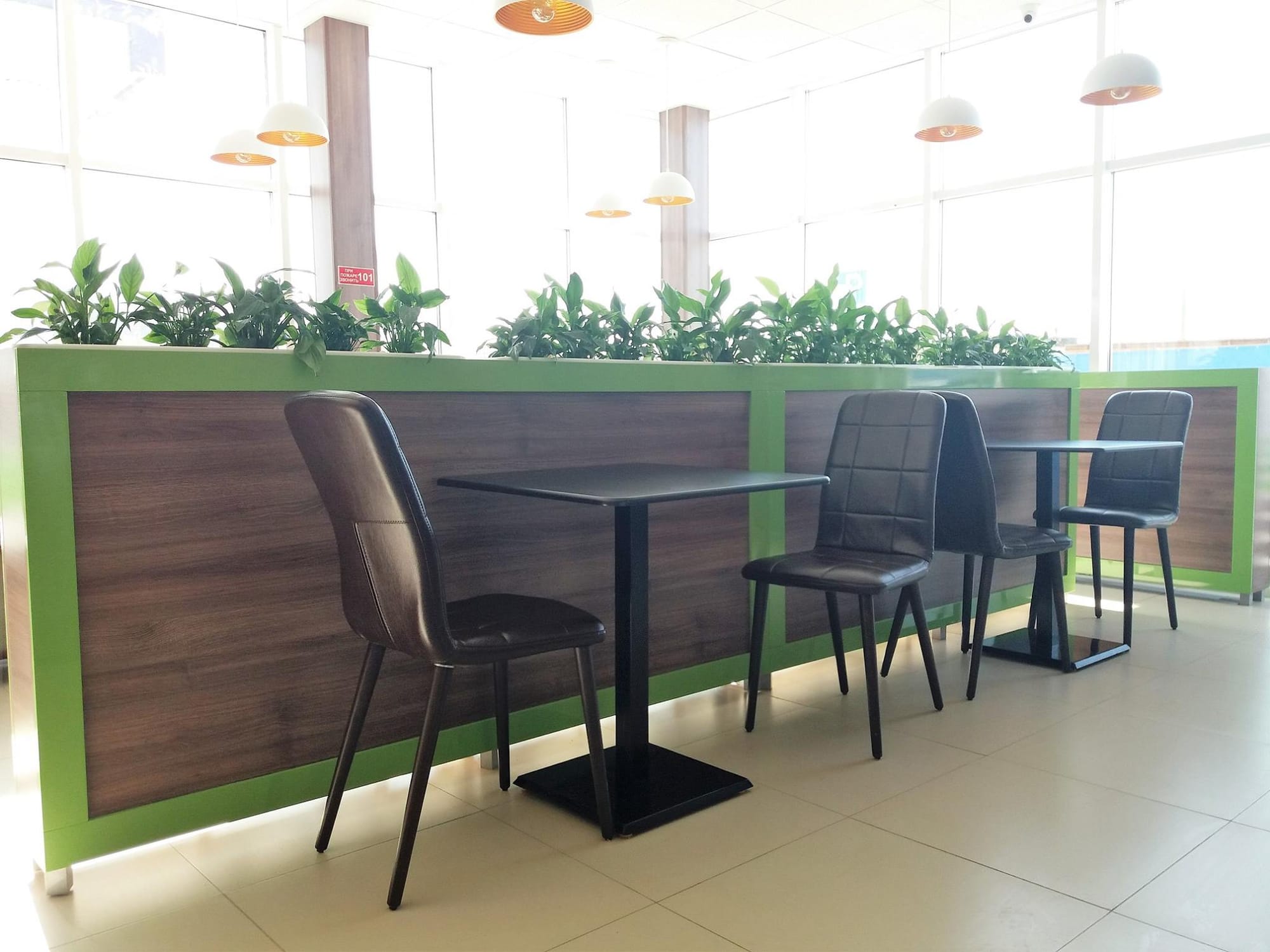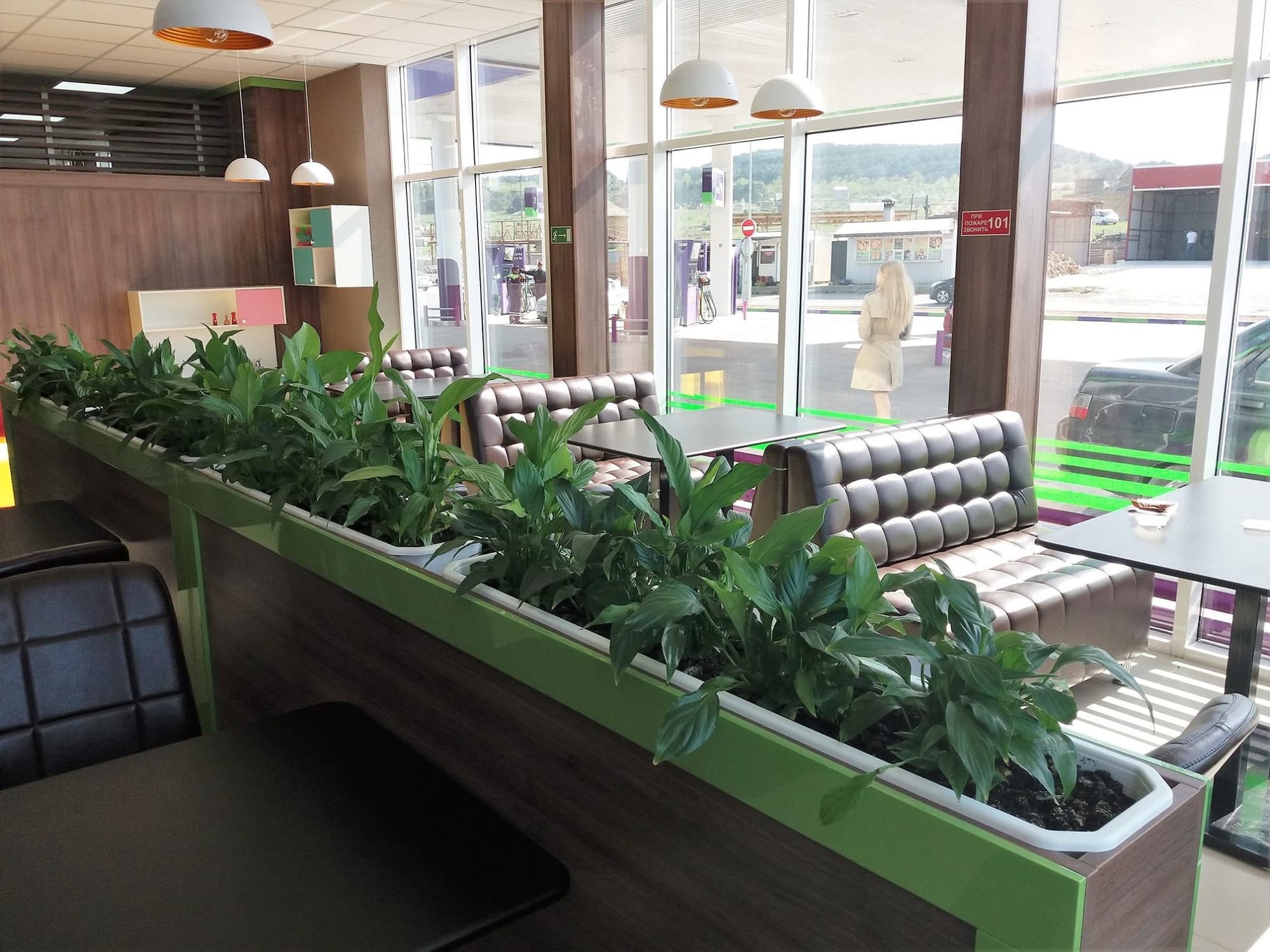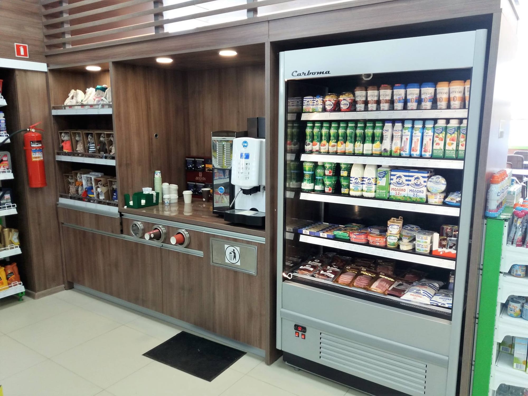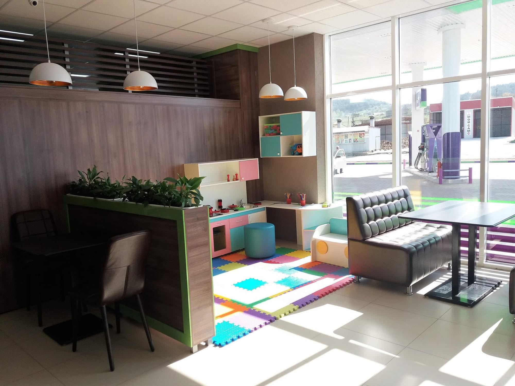 Для удобства посетителей магазин с широким ассортиментом товаров и кафе "АвтоФуд", где можно быстро перекусить фирменными бургерами, сендвичами, нагетсами, салатами. Установлен кофемодуль, позволяющий без очереди самостоятельно сделать свежесваренный кофе. Добавлены новые сервисы для семей с детьми - пеленальный столик, а также интерактивный детский уголок.