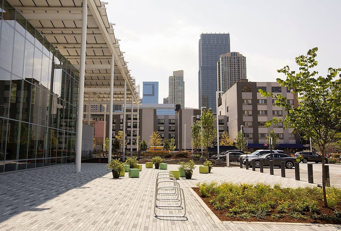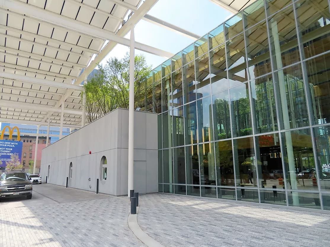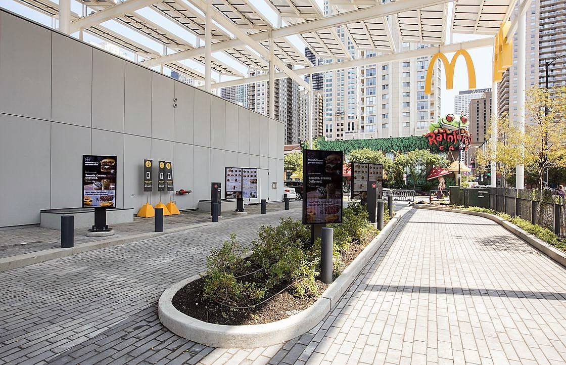 Занимая весь городской квартал, McDonald's создает городской оазис, где люди могут есть, пить и встречаться. Более 40% площади заведения - это пешеходное или садовое пространство под открытым небом, предоставляя парковые удобства для людей в переполненном городском ландшафте. Свыше 2000 кв.м территории засажены зелеными растениями.