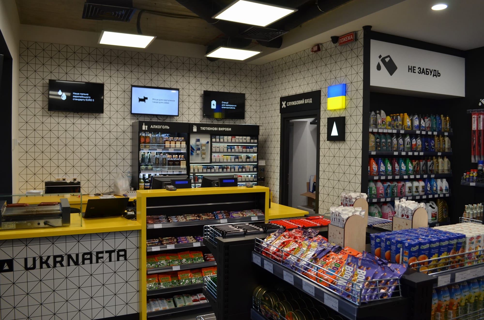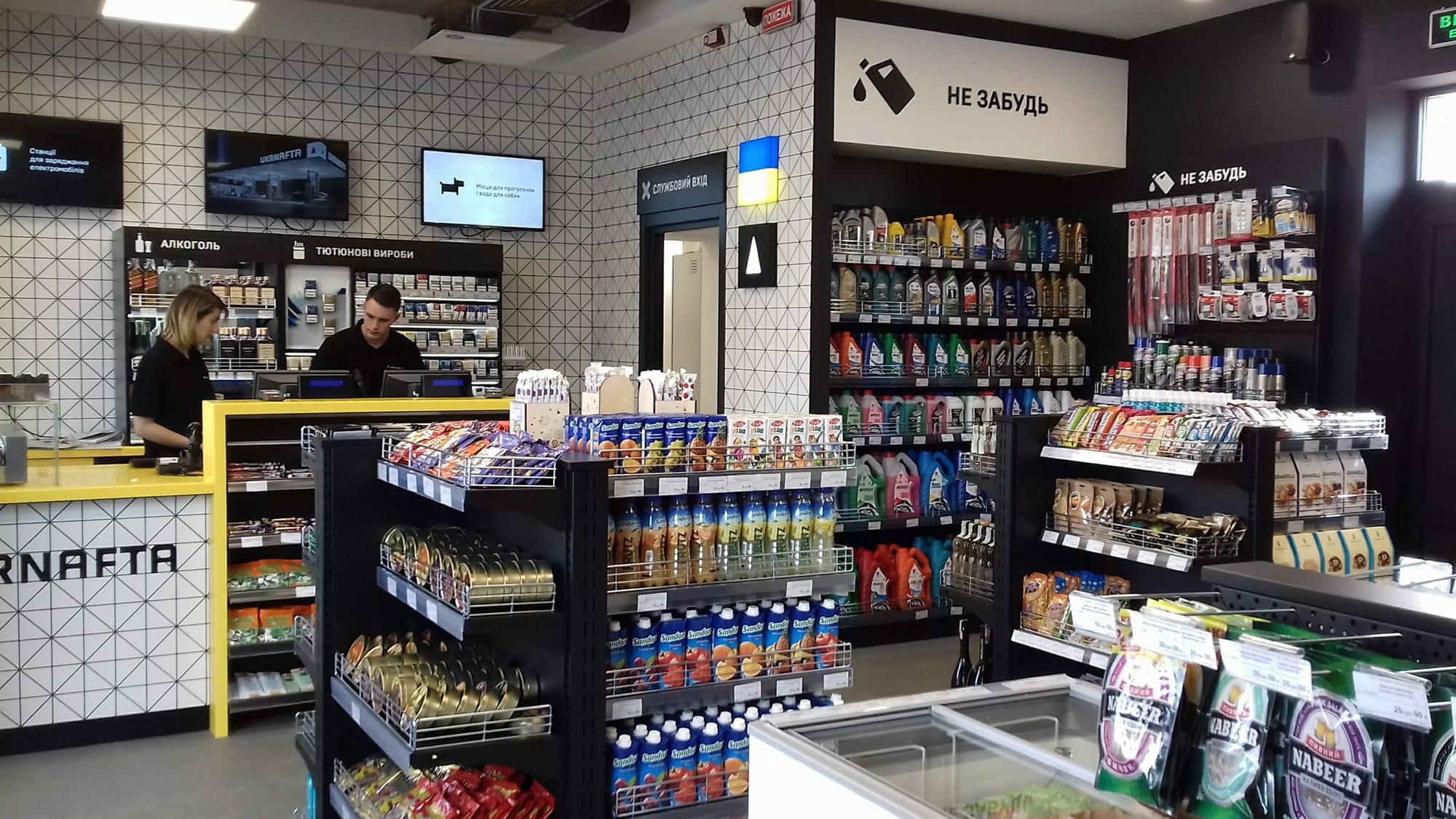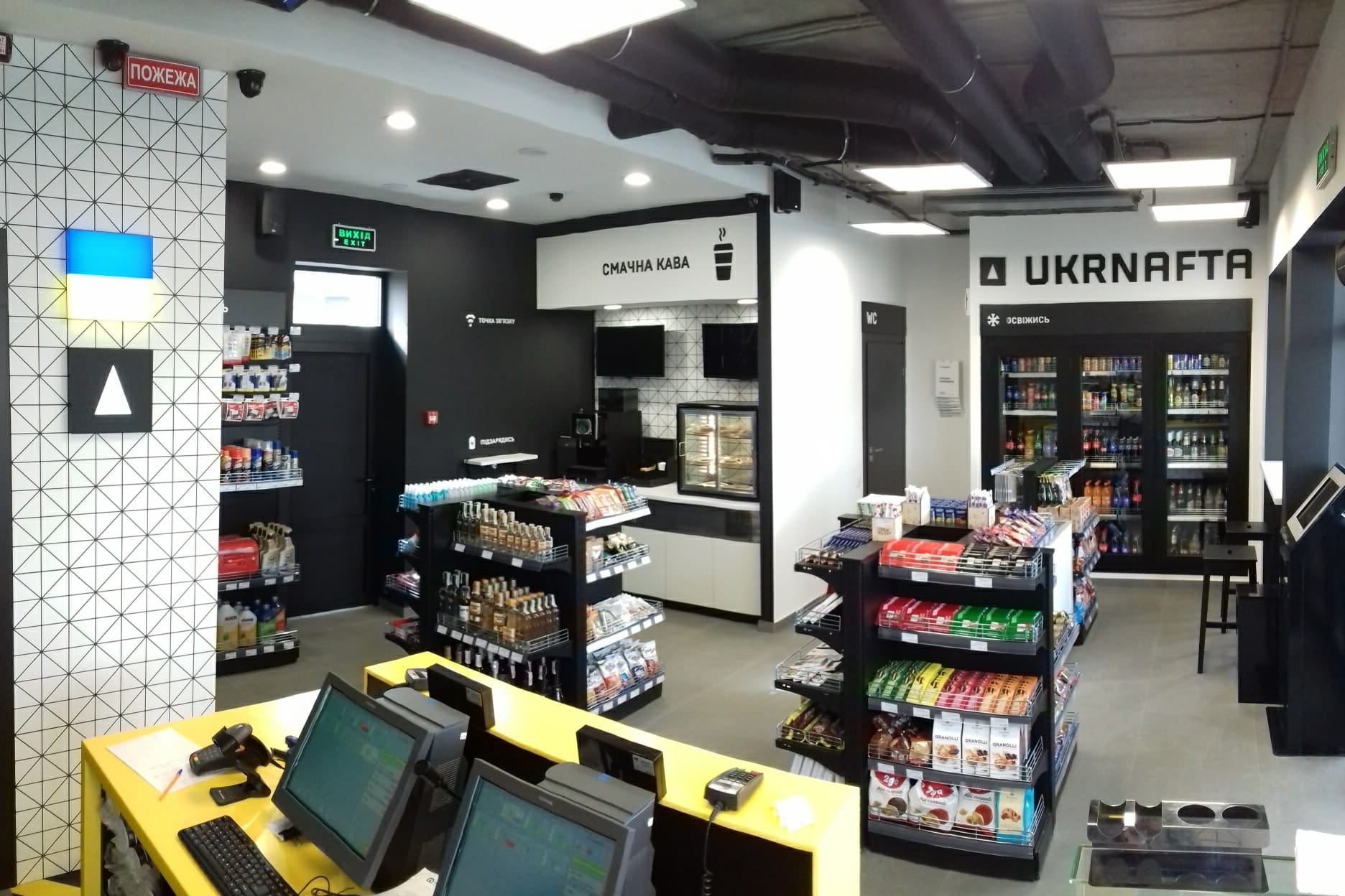 Для водителей в магазине на современной автозаправочной станции Ukrnafta представлены основные группы товаров. В ассортименте прохладительные напитки, продукты питания, табачные изделия, алкоголь, автотовары. Установлены кофемодуль и оборудование для хотдогов.