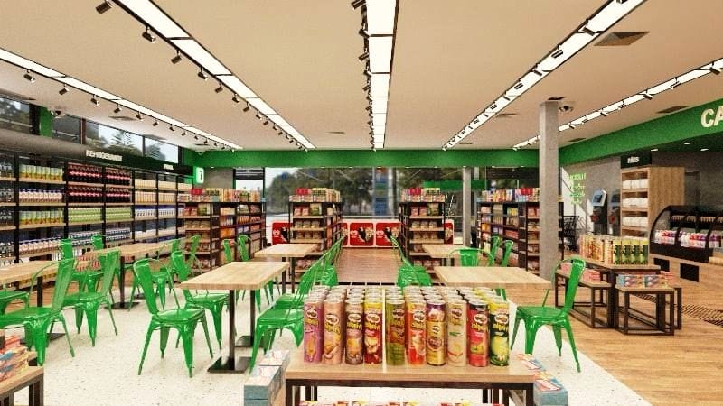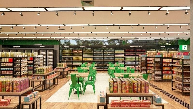 Новый формат Tudo 7 объединяет кафе, минимаркет с товарами повседневного спроса — всё для удобства местных жителей и туристов, которые гуляют по набережной района Бартоломеу в городе Сантосе.