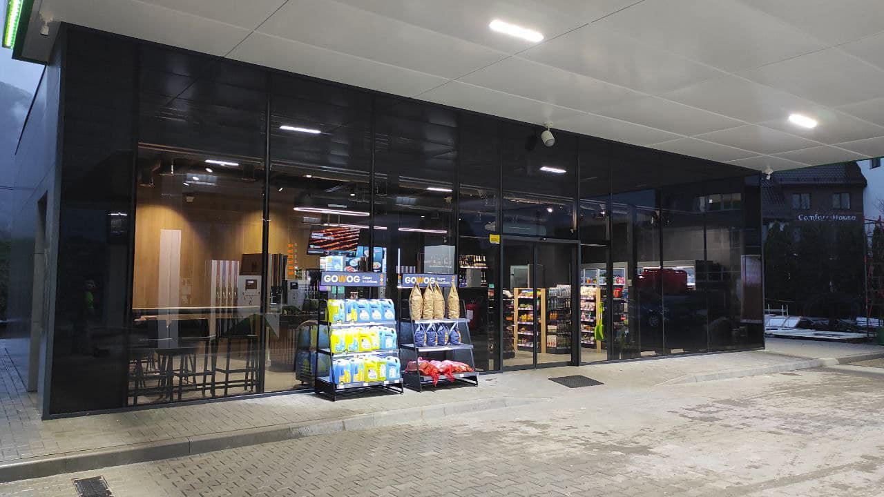 Реновации коснулись фактически всех зон: количество топливных колонок увеличено с 3 до 5 – теперь здесь может одновременно заправляться 10 автомобилей, кофемашина размещена на острове, что улучшает путь клиента и эргономику торгового зала в целом. Для быстрого обслуживания гостей была установлена дополнительная касса.