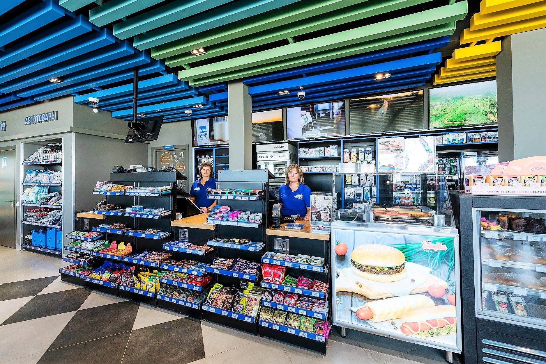 Магазин стал более просторным и функциональным, пространство для отдыха и перекуса оборудовано удобной мягкой мебелью, зоной самообслуживания со швейцарским профессиональным кофеварочным оборудованием и широким ассортиментом товаров собственной торговой марки.