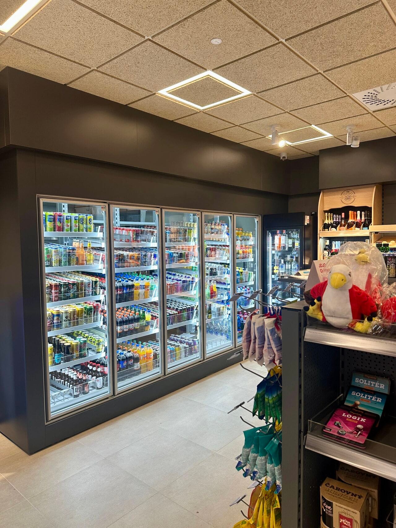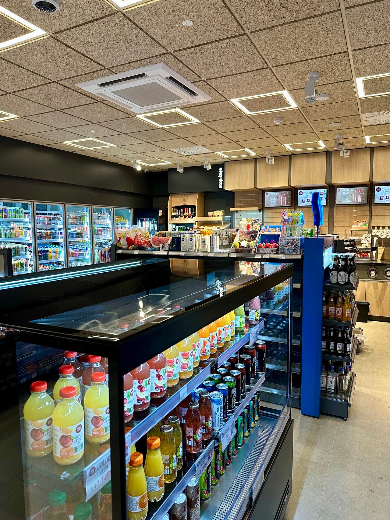 А холодильная витрина вынесена вперед и повернута прямо к клиентам. Можно быстро выбрать понравившиеся продукты без ожидания.