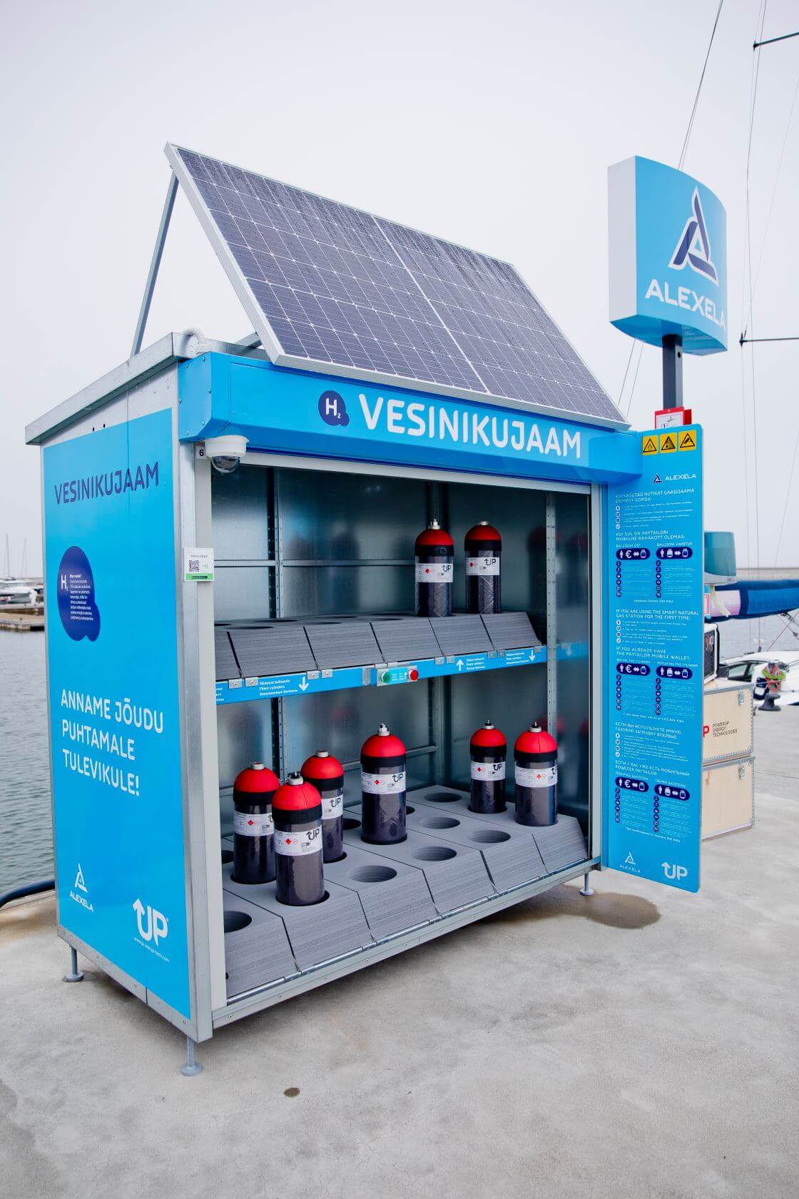 Эстонская энергетическая компания Alexela и стартап в области экологически чистых технологий PowerUP Energy Technologies представили первый в своем роде «водородный шкаф». Он дает возможность легко арендовать водородные баллоны через приложение, для их использования транспортными средствами, включая парусные лодки, яхты и автофургоны.