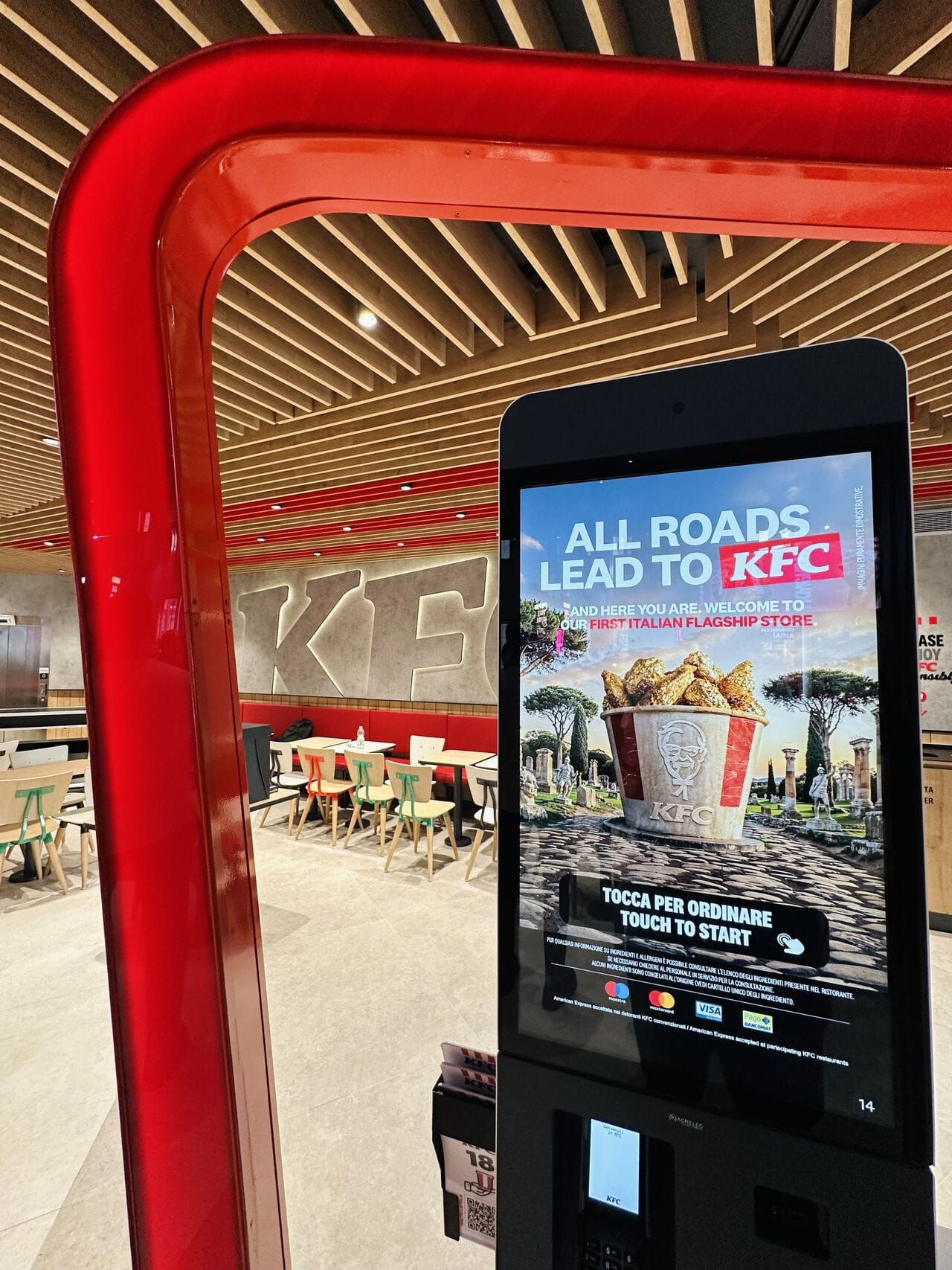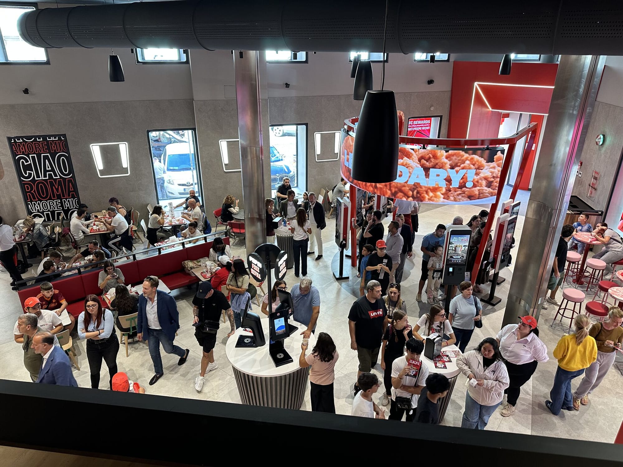 Kentucky Fried Chicken открыл в Риме свой первый флагманский ресторан в Италии — уникальный объект сети и самый большой в Европе. Расположенный на улице дель Тритоне, всего в нескольких шагах от фонтана Треви, новый ресторан занимает два этажа общей площадью 870 м² и отличается дизайном, устойчивыми решениями, технологиями и эксклюзивным сервисом. В мире существует всего три других флагманских ресторана KFC.
