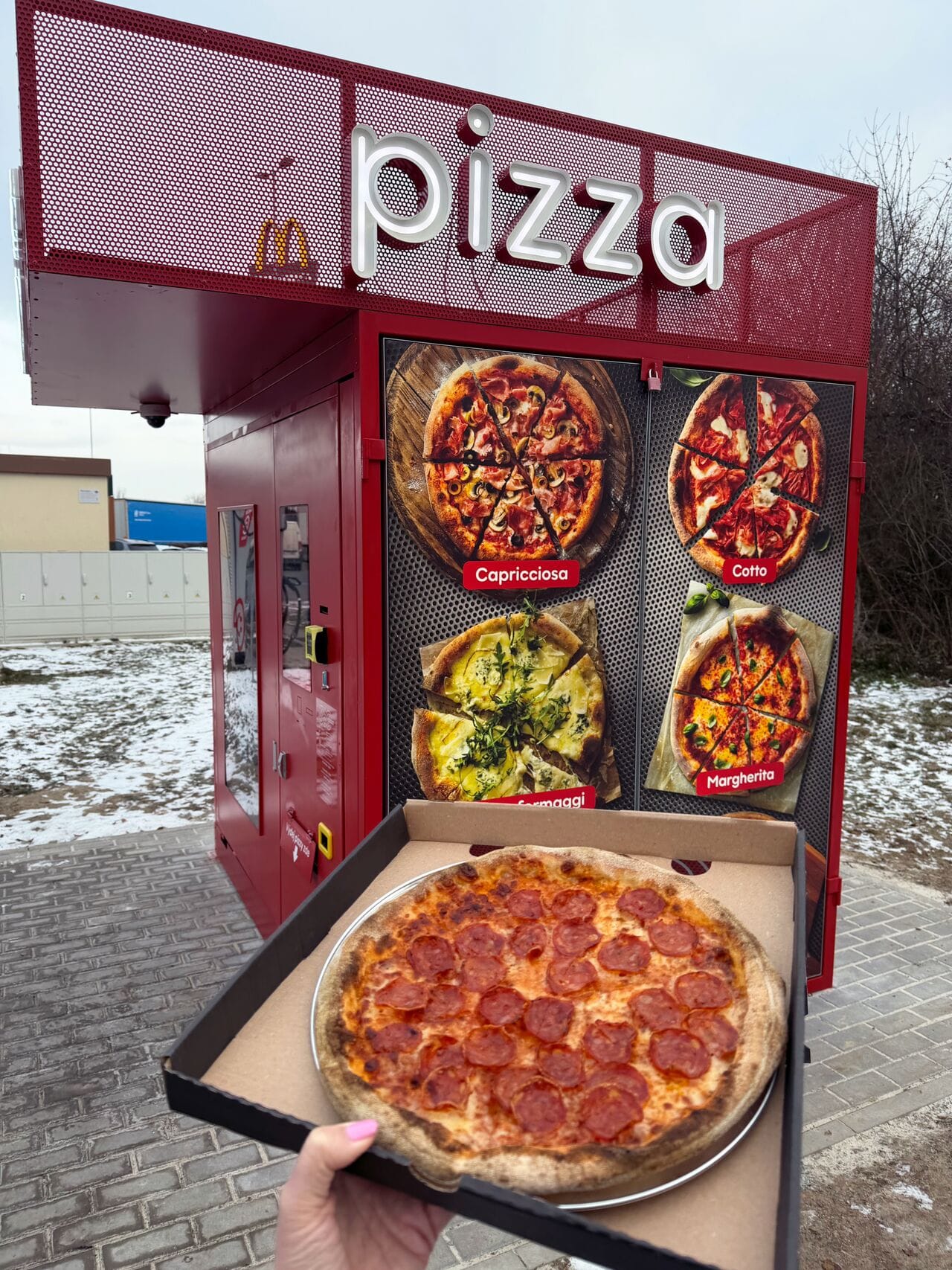 Пиццемат от компании 360pizza предлагает клиентам возможность получить быстрое питание круглосуточно без ожидания обслуживания. Он управляется компанией 360pizza, которую поддерживает известный предприниматель Петр Циходь, основатель брендов Bageterie Boulevard и Crocodille. Это концепция самообслуживаемой пиццерии, где клиенты могут выбрать любимую пиццу за несколько минут — ту, которую шефы пиццерии готовят на заказ, а затем охлаждают и размещают в автомате. Результат — идеально свежая и готовая к любому времени суток.