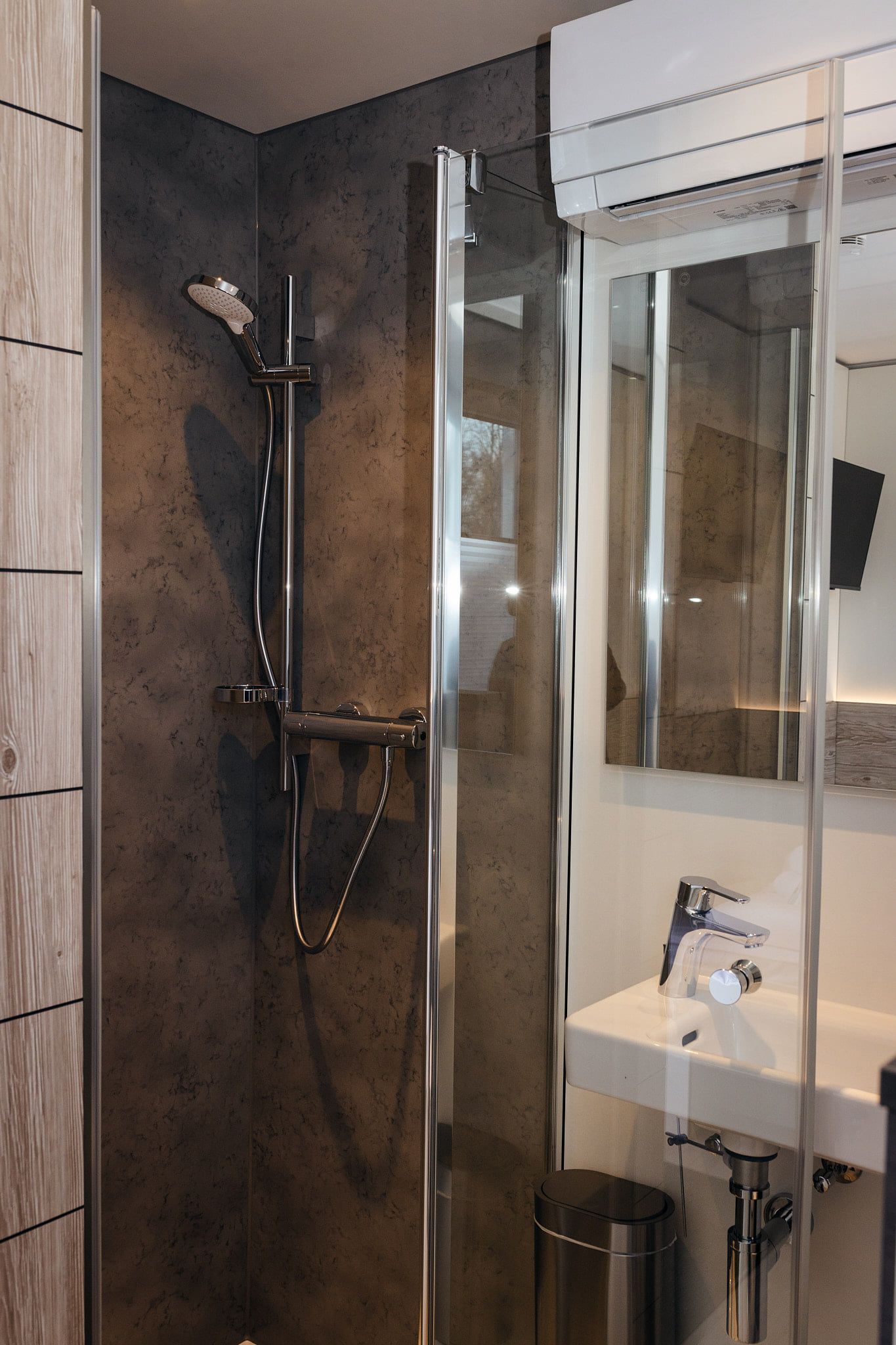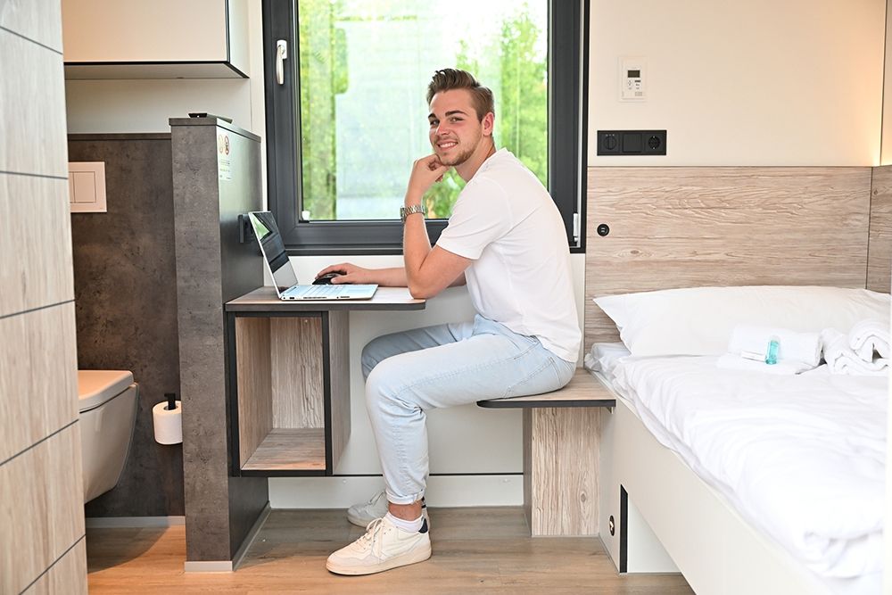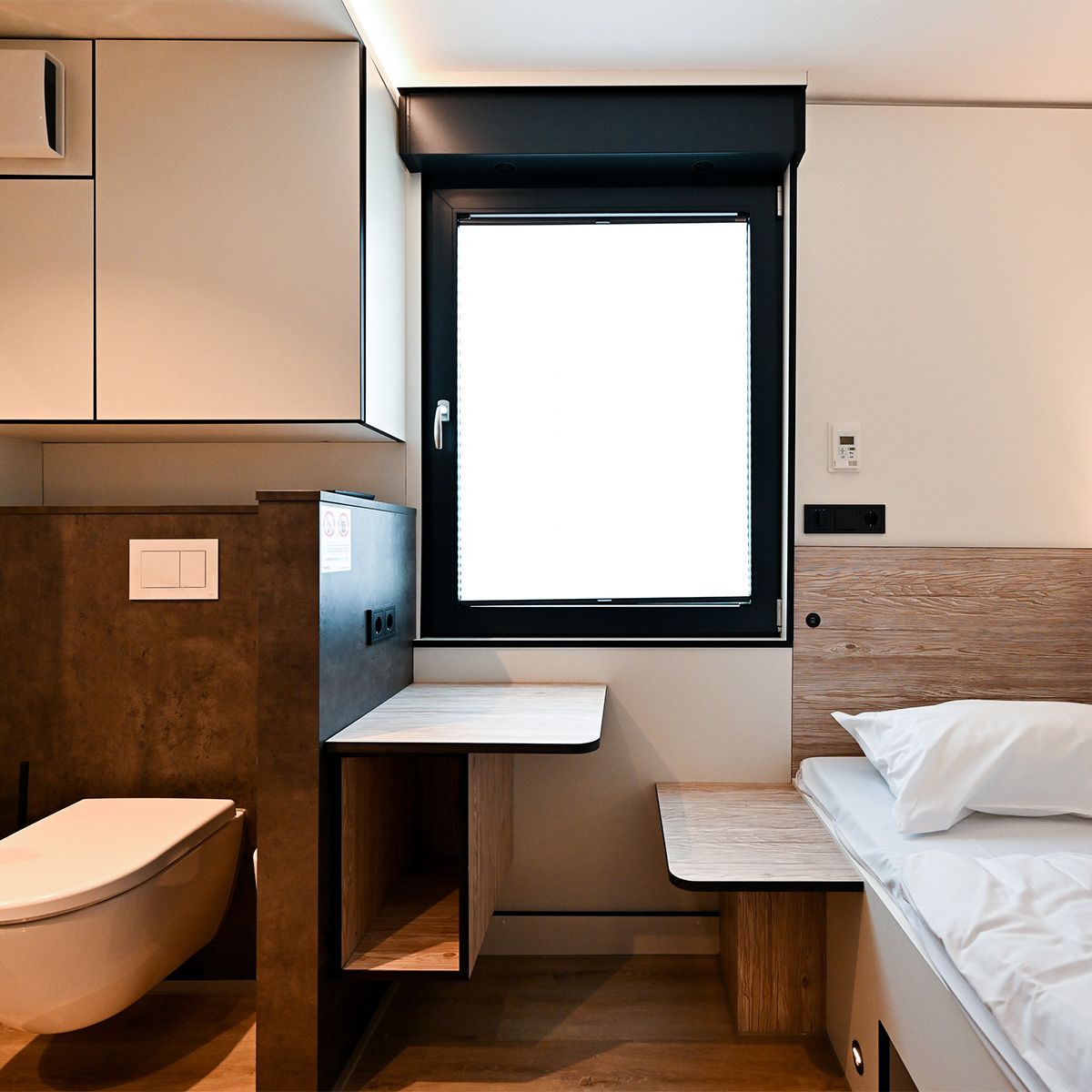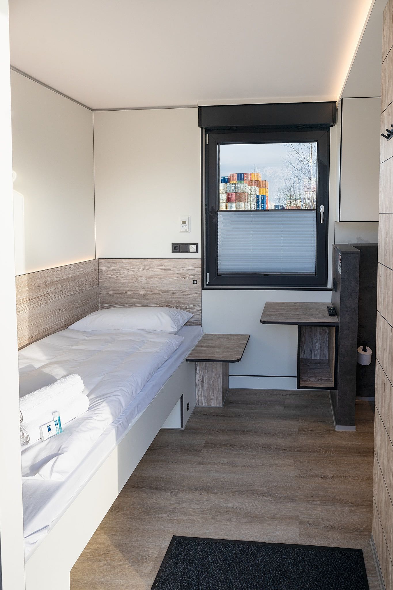 «Дизайн был очень важен для нас. Наш акционер, который строит Roatels в Нижней Саксонии, является производителем высококачественных кухонь и встроенной мебели. Он придавал большое значение прочным и качественным материалам. Первоначально это может быть дороже в производстве, но в долгосрочной перспективе затраты на уход и техническое обслуживание будут ниже. Кроме того, каждый гость чувствует себя ценным и безопасным в номере. Если бы вы проснулись в номере Roatel и не знали, что находитесь в грузовом контейнере, вы бы не поверили. Контейнеры, которые мы используем, бывают очень высокими (высокий куб) и очень широкими (ширина поддона). Это позволяет нам достичь высоты потолка 2,50 м после внутренних работ. Это больше, чем во многих квартирах», – рассказывает Кристиан Тейзен.