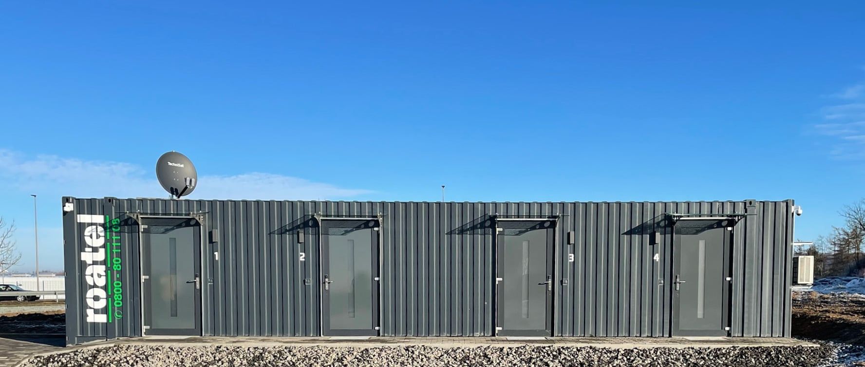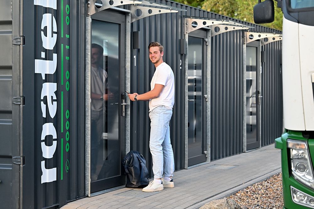 Контейнеры Roatel – это не только спальные места, но и продуманная концепция с точки зрения окружающей среды, комфорта и дизайна. На крышах установлены солнечные батареи. Компания берет на себя все административные функции, устанавливает контейнеры за один день в короткие сроки и платит своим клиентам, будь то автозаправочные станции или стоянки для отдыха, арендную плату.
