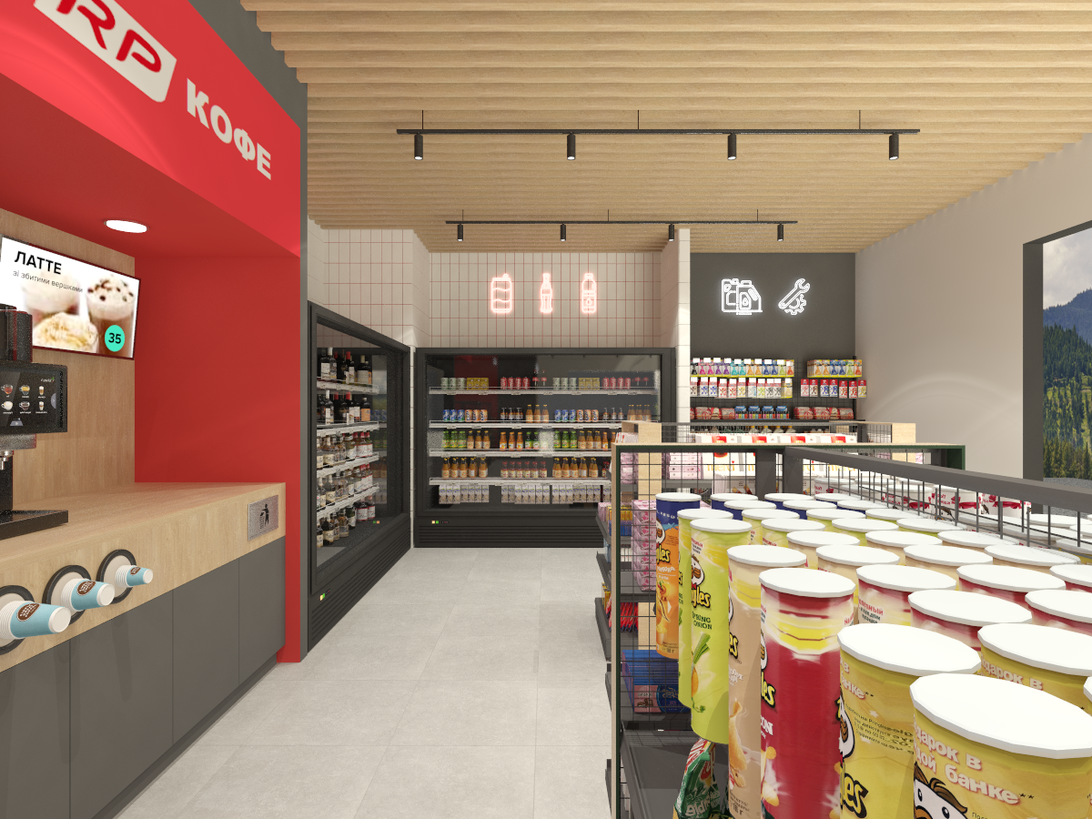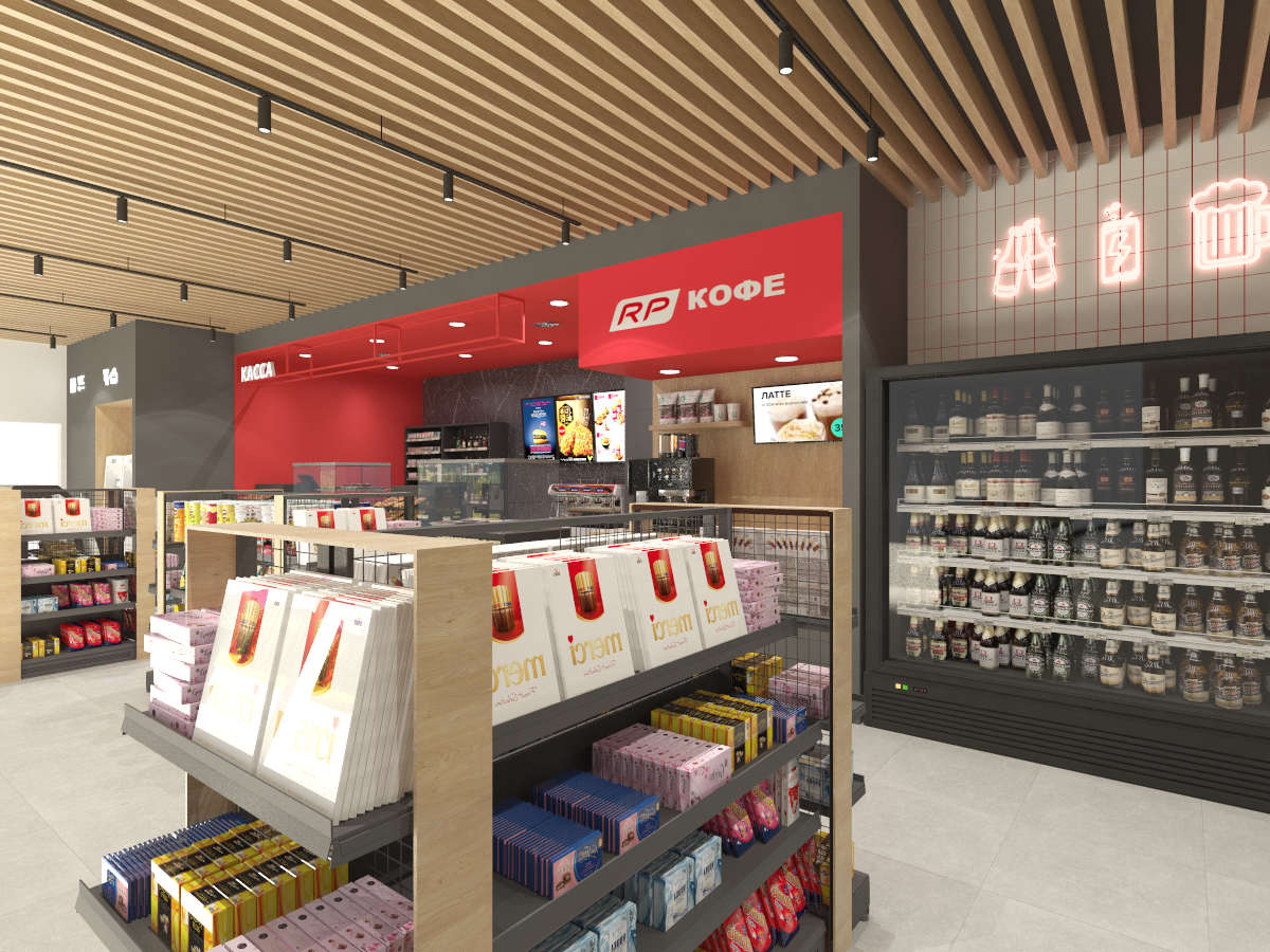 Разработка для сети АЗС Red Petroleum двух новых форматов магазинов площадью 100 и 150 м2.