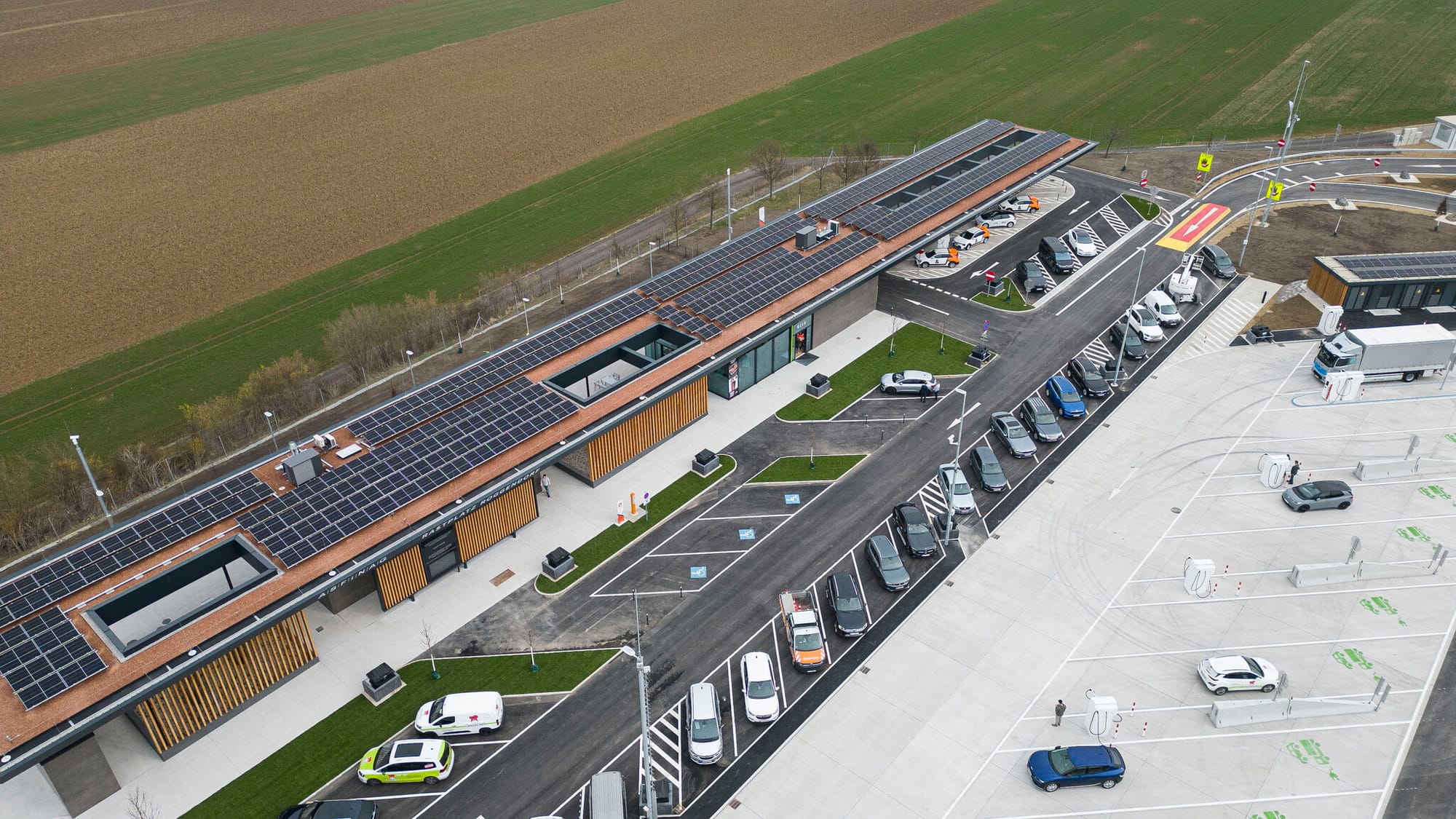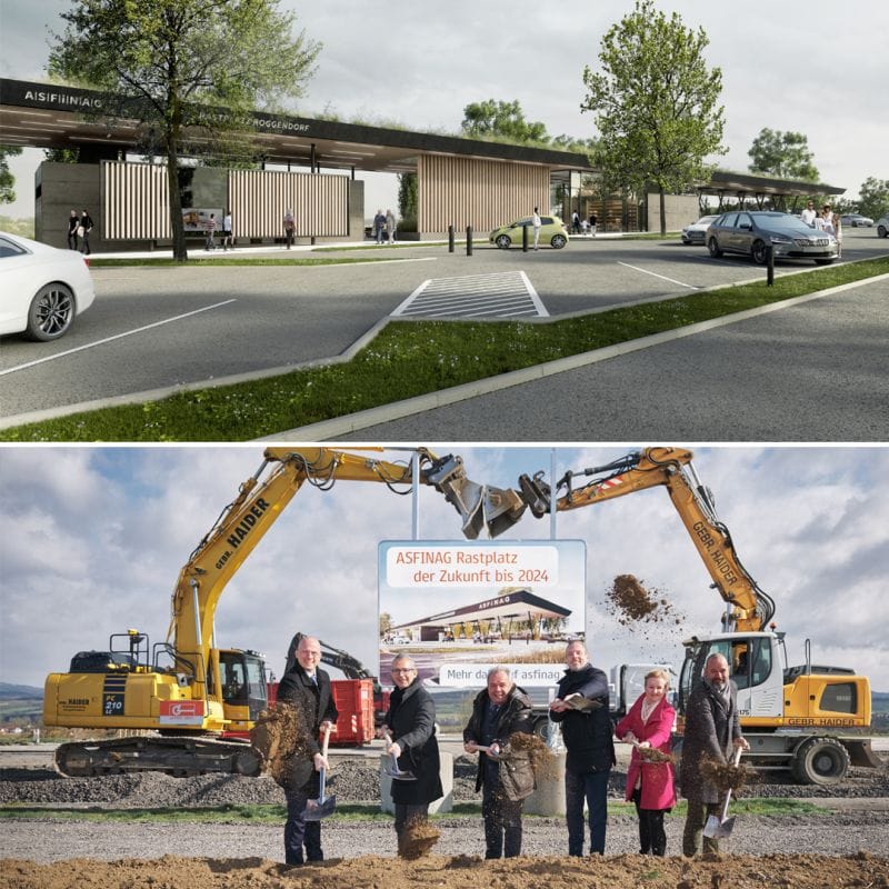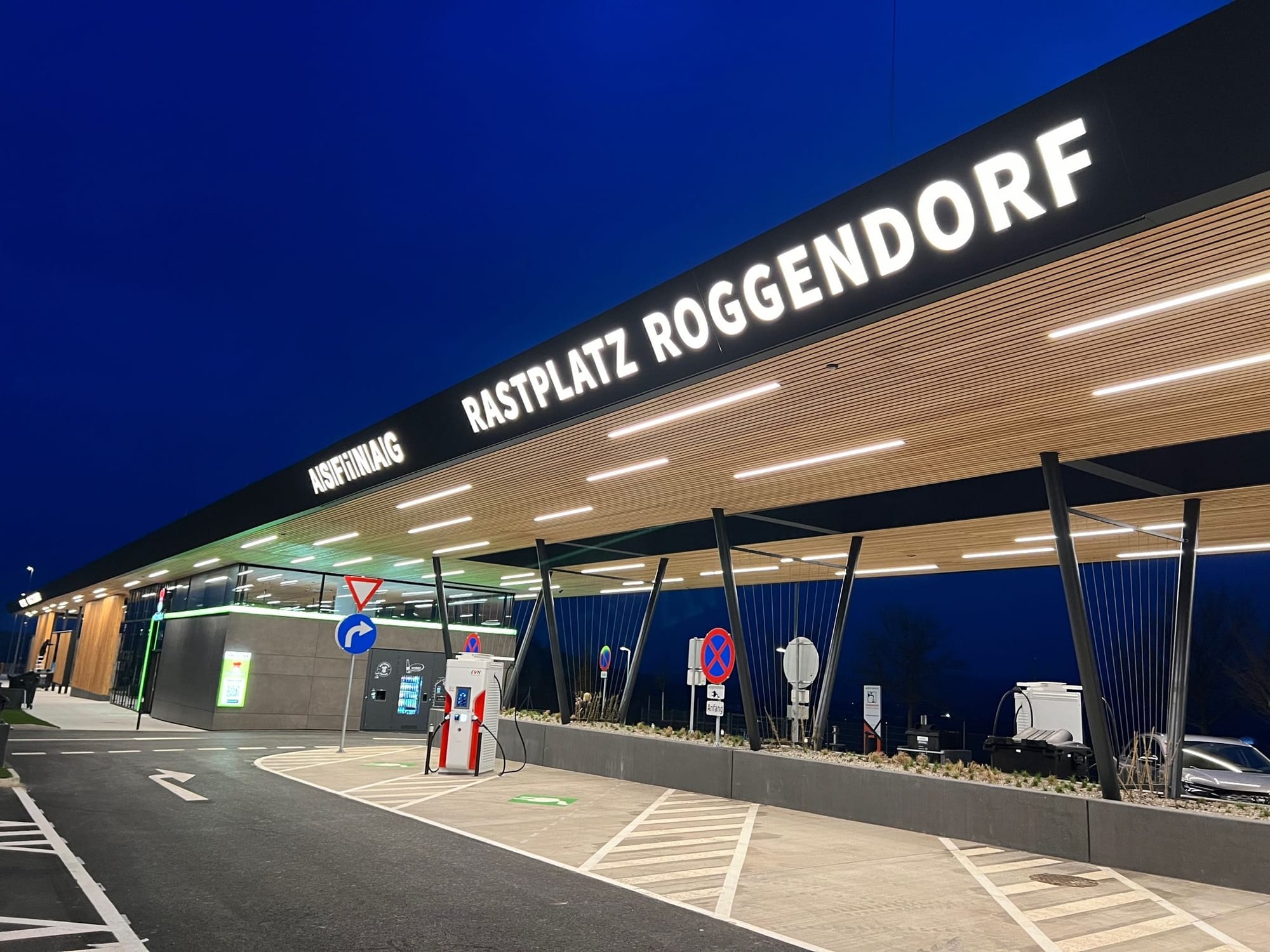 Asfinag инвестировала 19 миллионов евро в самую современную зону придорожную отдыха на автомагистралях Австрии, которая расположена на трассе A1 недалеко от Роггендорфа в направлении Зальцбурга. Помимо экологичности, впервые на придорожной стоянке доступна мощная зарядная инфраструктура, как для легковых, так и для грузовых электромобилей, а главным приоритетом остается конечно сервис. Здесь есть детская игровая площадка, парк для собак и бистро.