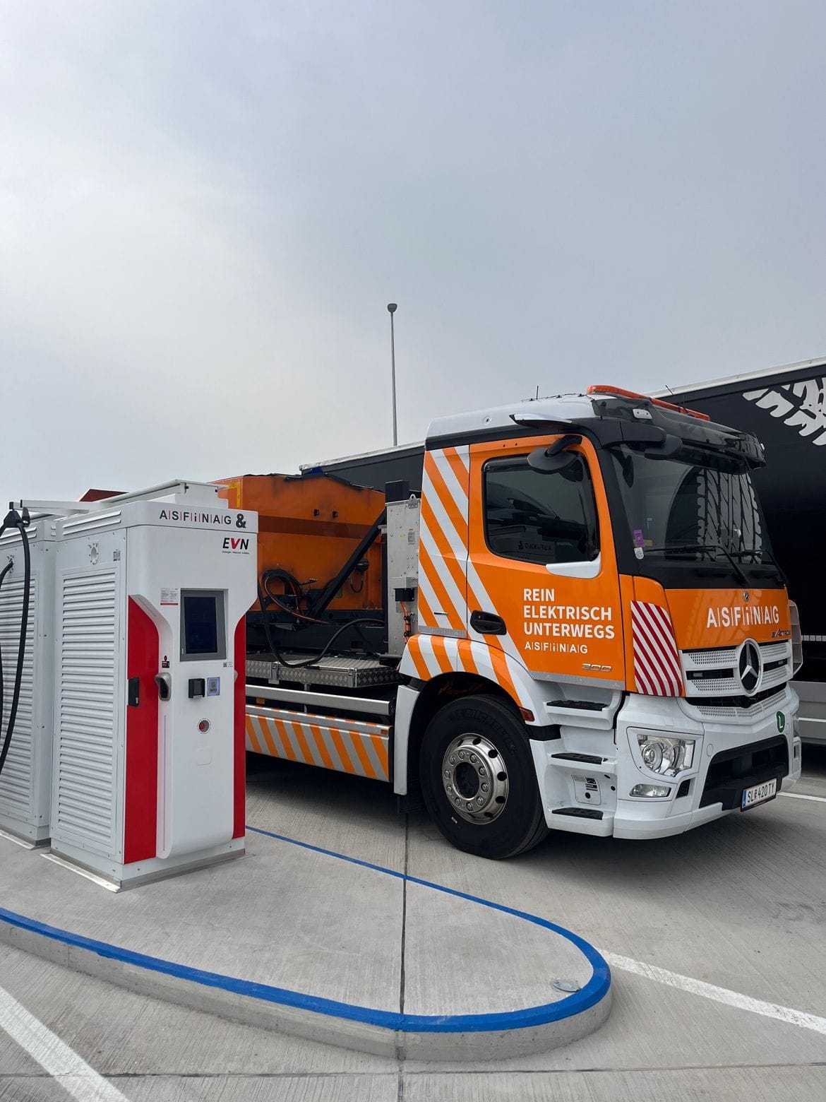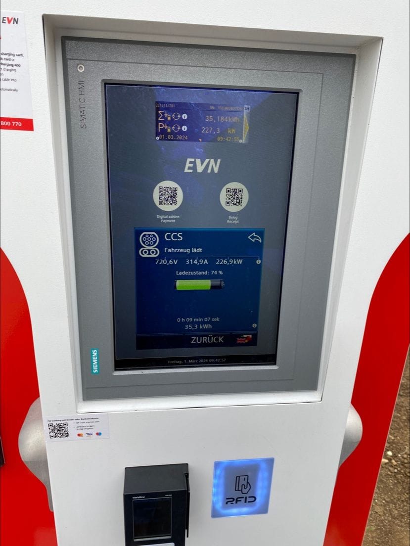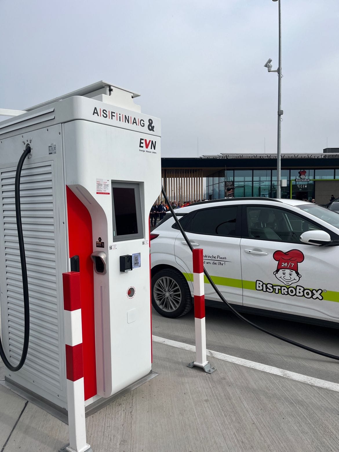 С новой зоной отдыха ASFINAG также открывает новую главу в области станций зарядки электромобилей. Впервые ASFINAG предоставляет зарядные станции на территории своего присутствия. Электромобили можно заряжать за очень короткое время с помощью шести закрытых зарядных устройств высокой мощности (150 кВт). Еще три таких зарядных устройства (350 кВт) можно использовать гибридно для грузовых автомобилей и еще восемь (150 кВт) для легковых и большегрузных автомобилей. Впервые оплатить зарядку можно также напрямую с помощью кредитной карты через платежный терминал.