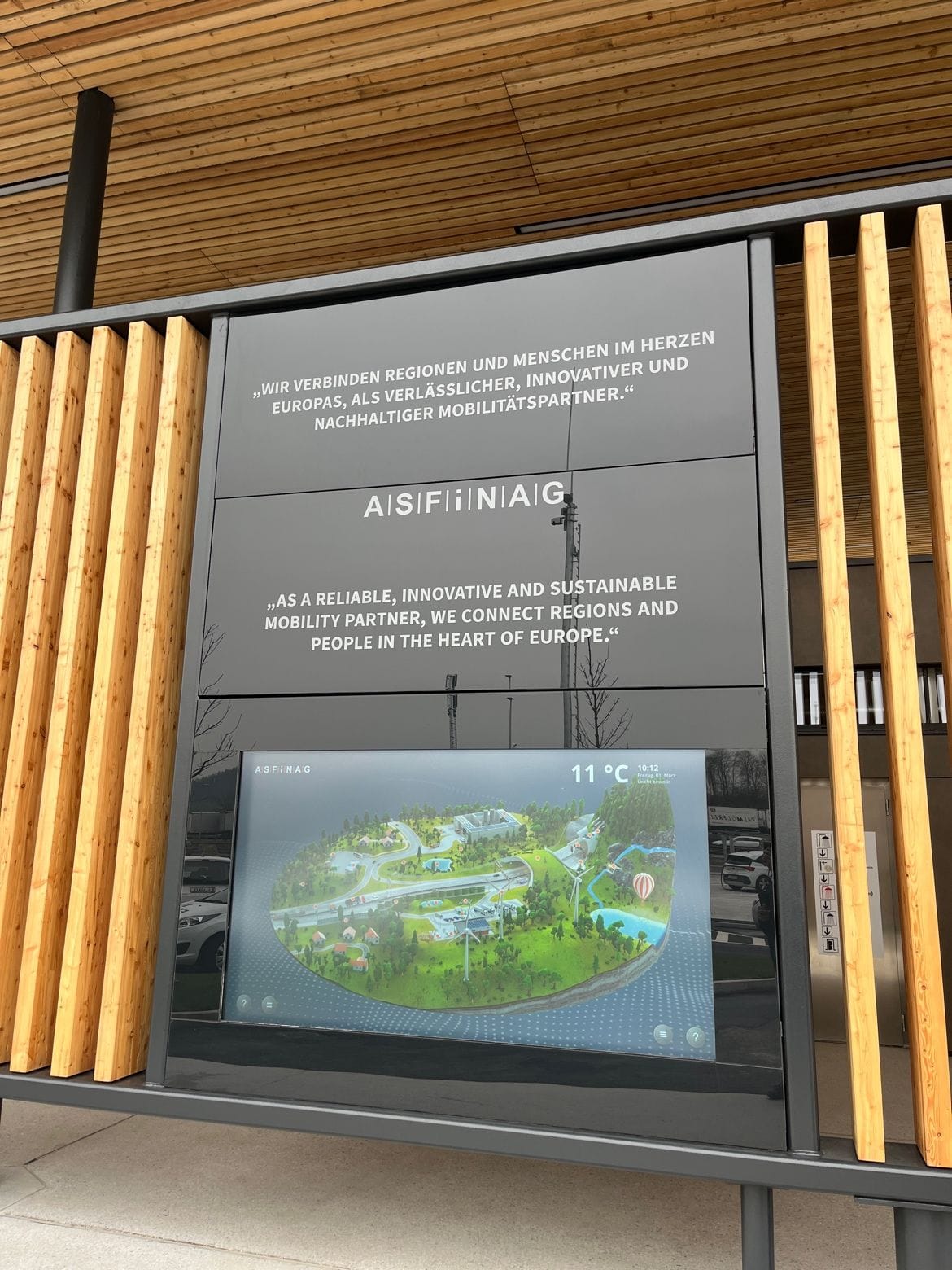 Как только вы въезжаете, на электронном информационном табло отображаются свободные места для парковки легковых и грузовых автомобилей. Еще один информационный экран на внешней стороне здания сообщает гостям всю важную информацию о маршруте, строительных площадках, пробках или авариях. Также доступна информация о погоде и все важное о дорожных сборах и виньетках. Современное яркое светодиодное освещение является таким же средством безопасности, как и средства экстренного вызова и прямая голосовая связь с ответственным центром управления дорожным движением ASFINAG в Вене-Инцерсдорфе. Как только будет сделан экстренный вызов, голосовое соединение будет установлено автоматически. Если экстренный вызов поступает в ночное время, освещение включается автоматически. Дефибриллятор с простыми инструкциями по эксплуатации и подключением камеры – также к штаб-квартире ASFINAG – дополняют функции безопасности.