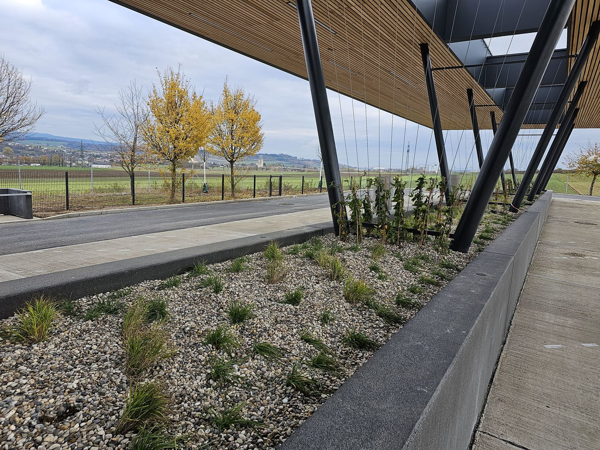 Площадь на трассе А1 в направлении Зальцбурга, которая уже используется, как зона отдыха, составляет около 25000 квадратных метров. При строительстве нового объекта компания ASFINAG не хотела дополнительно расширять уже заасфальтированную территорию. Кроме того, выкопанный материал и материал для сноса перерабатывался и по большей части повторно использовался непосредственно или вблизи строительной площадки. Это означало, что этот проект смог сократить выбросы CO2 на этапе строительства, как за счет меньшего транспорта материалов, так и за счет меньшего потребления ресурсов для новых строительных материалов.