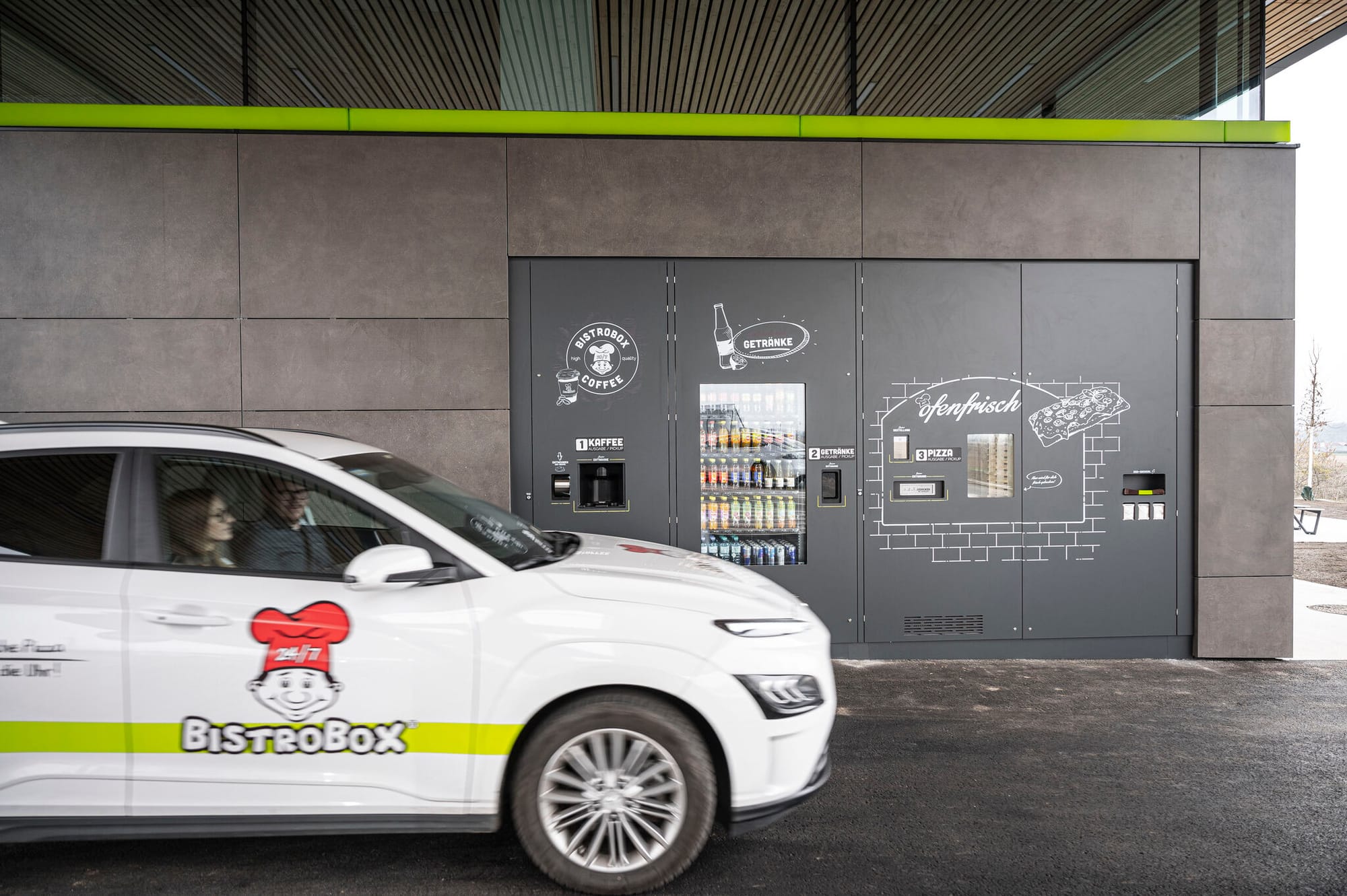 Так называемый «Уголок с одним персоналом» позволяет управлять всем магазином в круглосуточном режиме одним сотрудником на месте. Кроме того, BistroBox предлагает автоматизированный Drive-In, где клиенты могут сделать предварительный заказ через приложение.