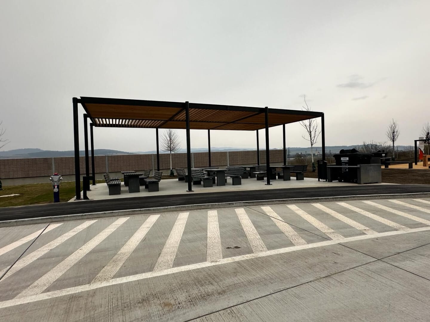 - 6 крытых зарядных станций для автомобилей.