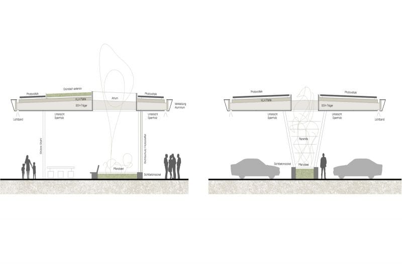 Для орошения используется инновация – принцип так называемого губчатого города. Это дает деревьям больше места для развития под мощеной поверхностью в соединенных между собой гравийных телах. Подложка под поверхностью дала концепции название и действует как губка. Щебень, смешанная с компостом и другими веществами, обеспечивает корням достаточно рыхлой почвы для их распространения. В то же время субстрат может хранить воду в небольших полостях. Это становится доступным для растительности, способствует ее развитию и положительно влияет на микроклимат в зоне отдыха.