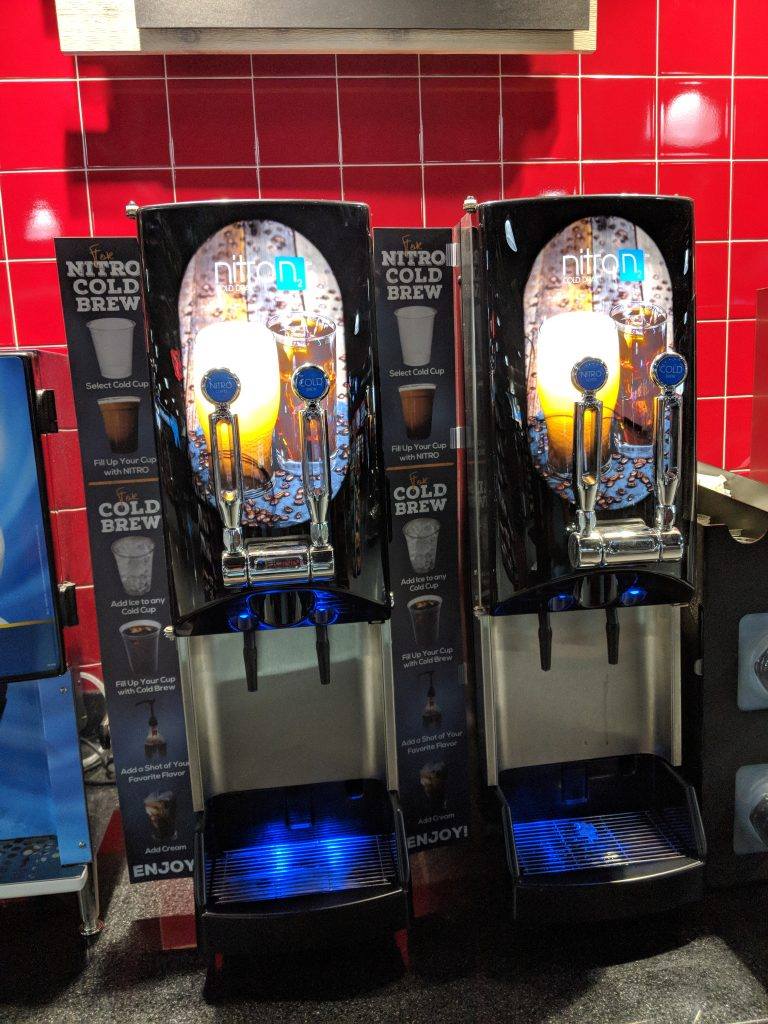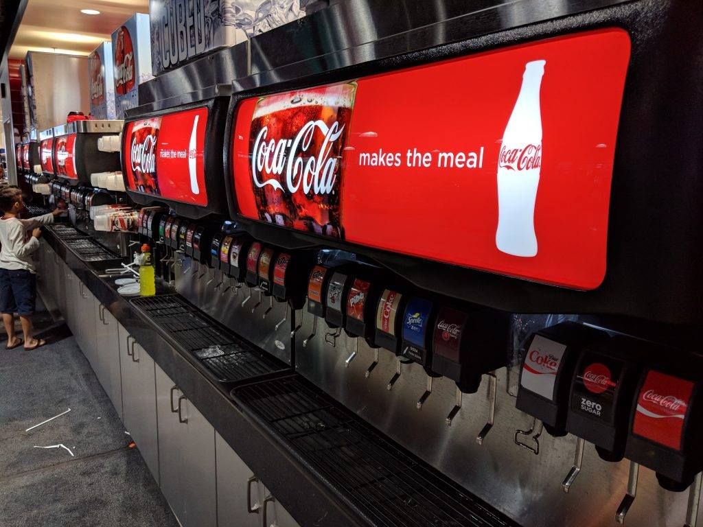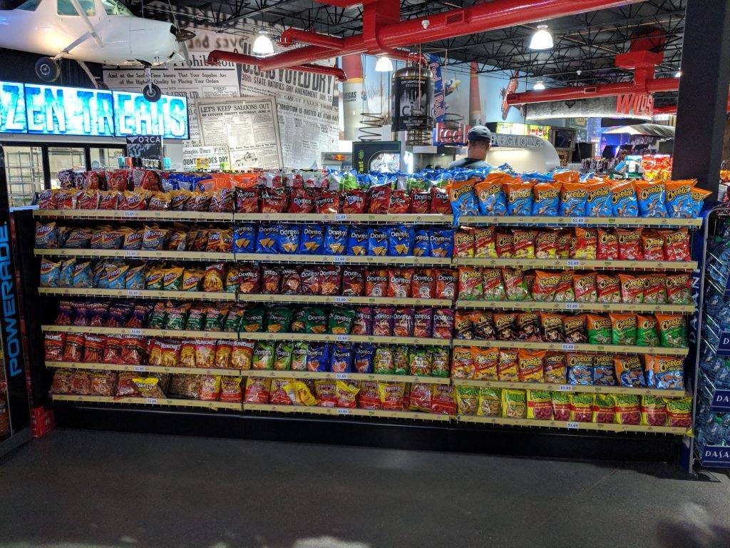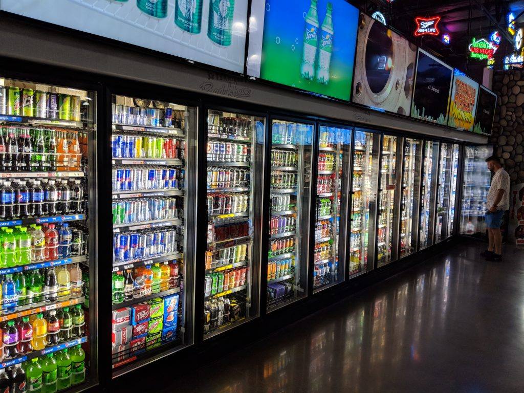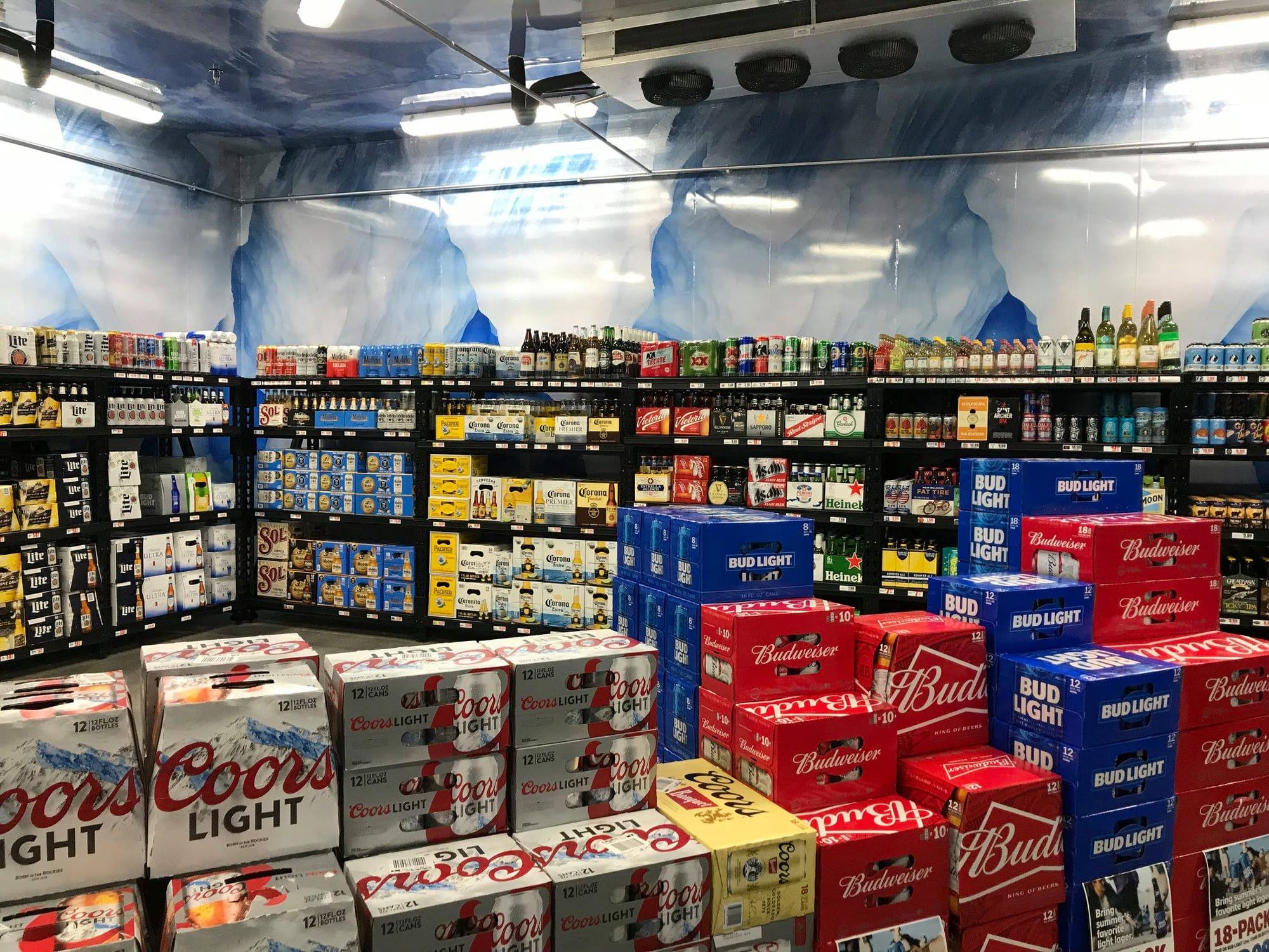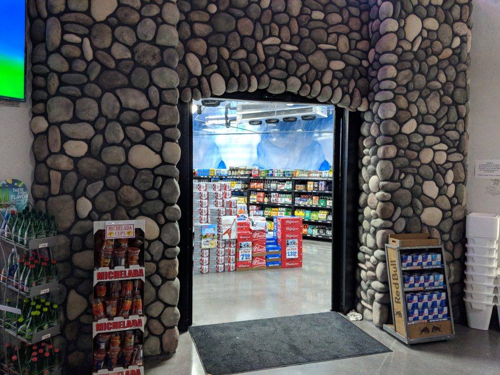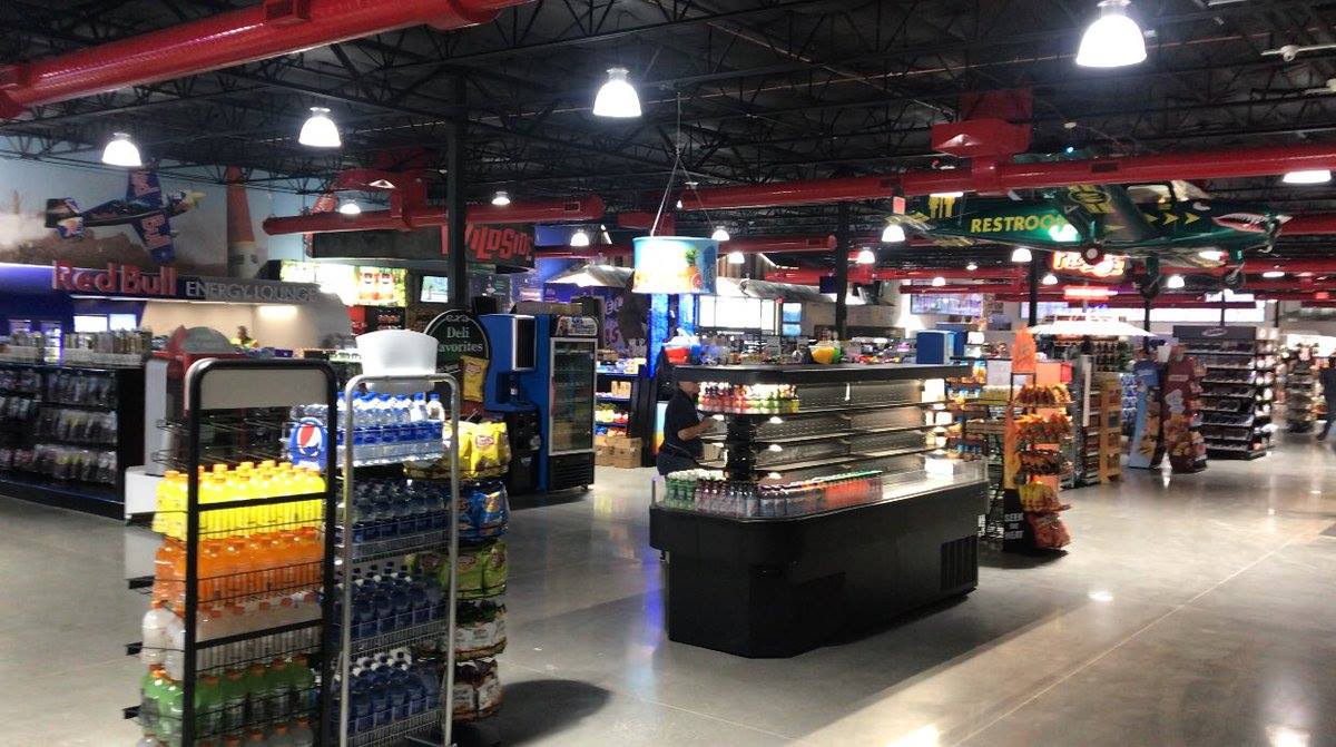 В магазине огромный выбор продуктов питания, готовой еды и напитков. Напитки представлены как в холодильниках, так и на фонтанах с 72 дозаторами. Есть даже возможность выбора льда - кубиками или дробленный. Размещена большая холодильная пивная камера. Выбор кофейных напитков, в том числе 3-метровый кофебар с холодным кофе, который встречается только в специализированных кафе.