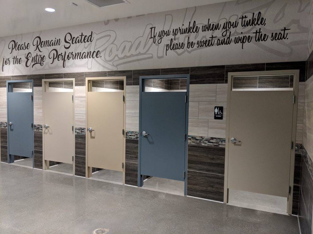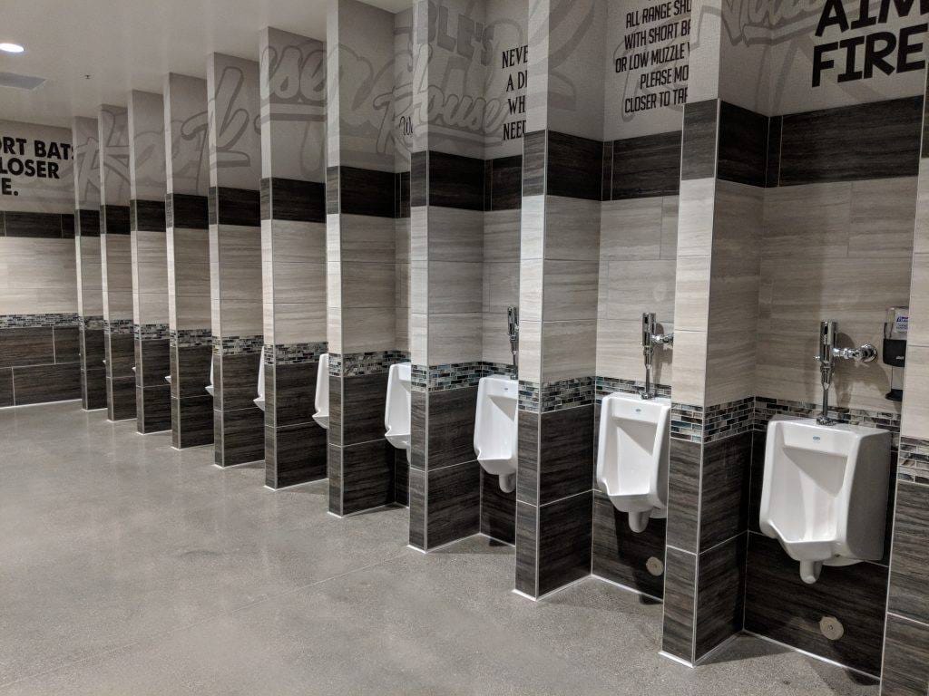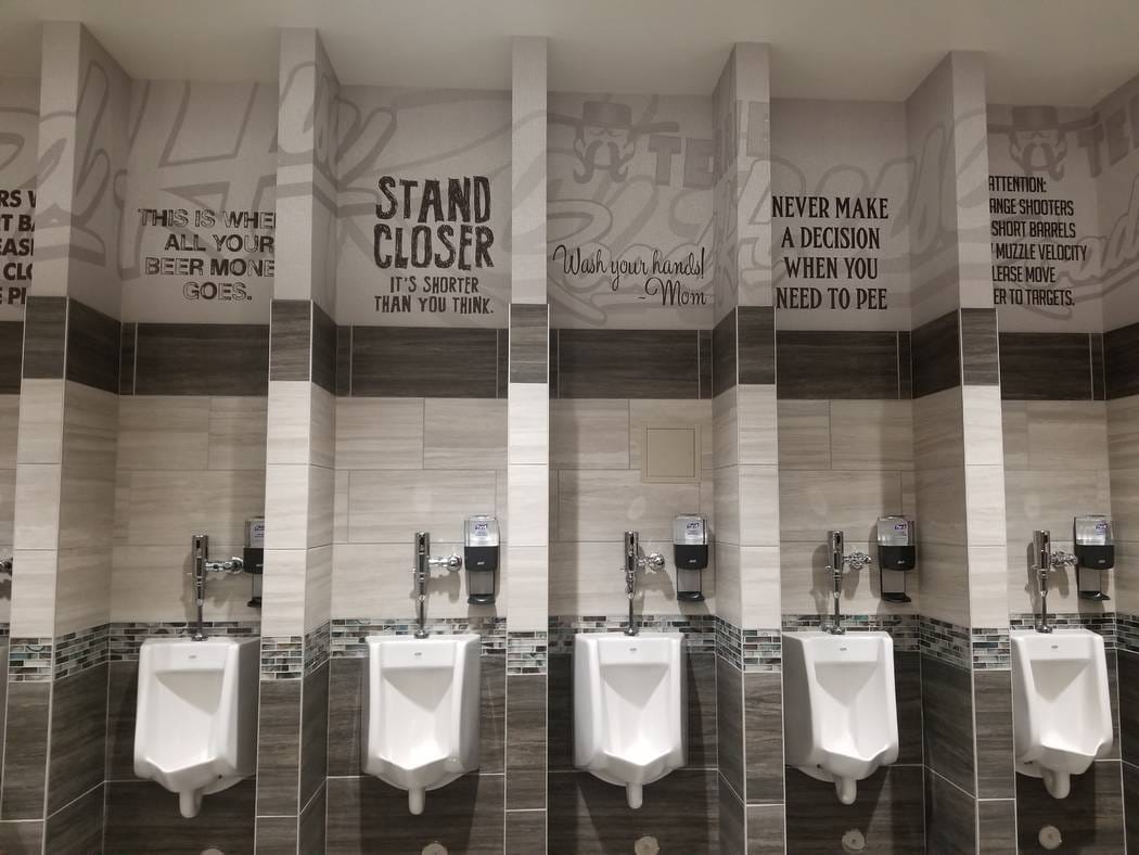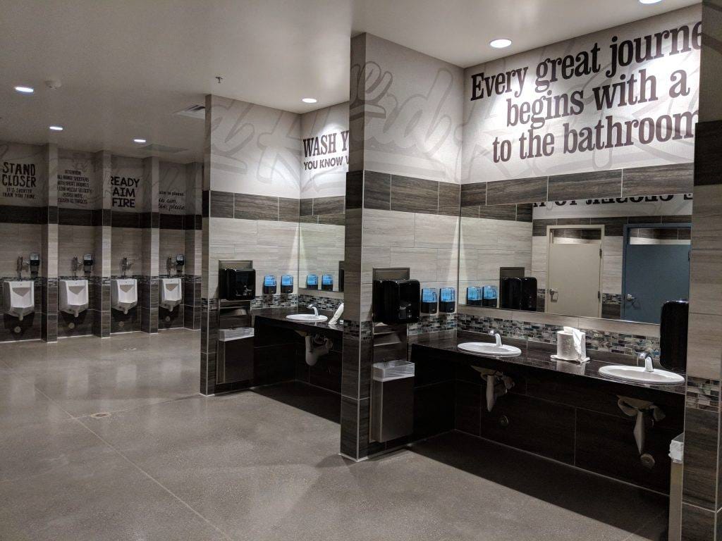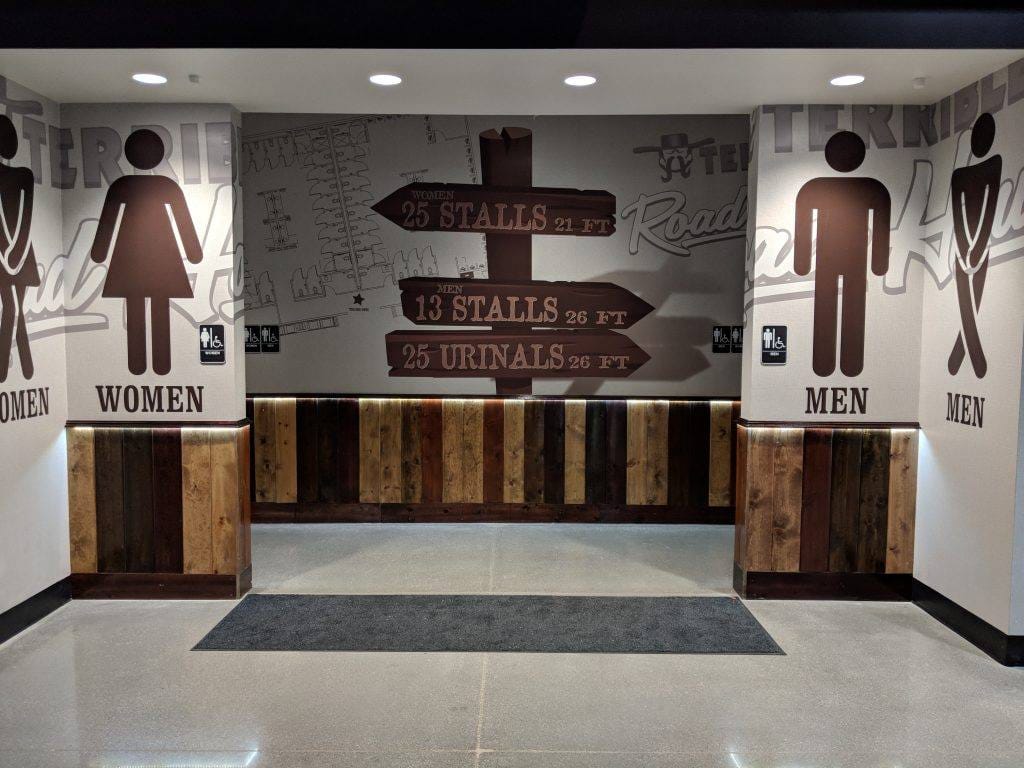 Туалетами одновременно могут воспользоваться около 60 человек. В каждой кабинке и возле писсуаров установлены дозаторы с дезинфицирующим средством для рук. Все оборудование бесконтактное, включая бумажные полотенца и мыло. Туалеты всегда поддерживаются в чистоте. В дизайне использованы различные цитаты.