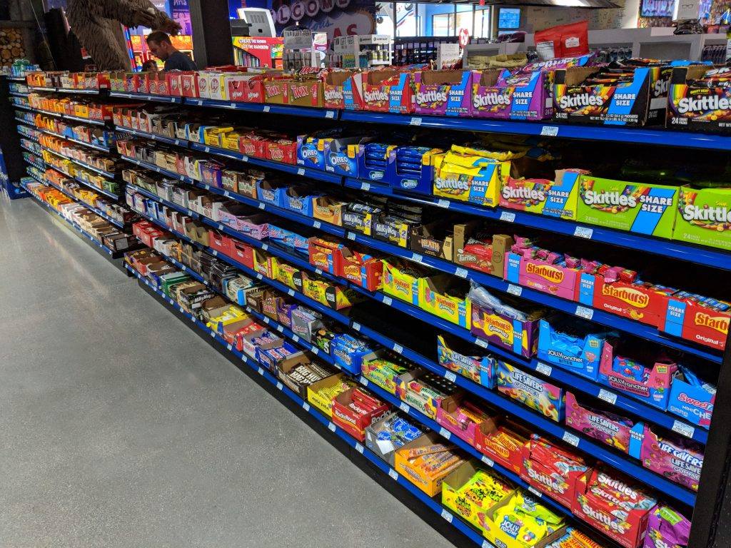 Отдел сладостей площадью свыше 370 кв.м предлагает широкий выбор весовых конфет. Представлено несколько рядов с конфетами, традиционных как M&M и Starburst, а также других марок, в том числе с ретро-вкусами. Можно смешивать конфеты, например, создать свою комбинацию Skittles на торговом автомате.