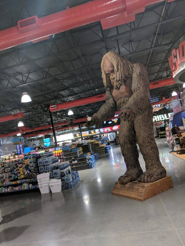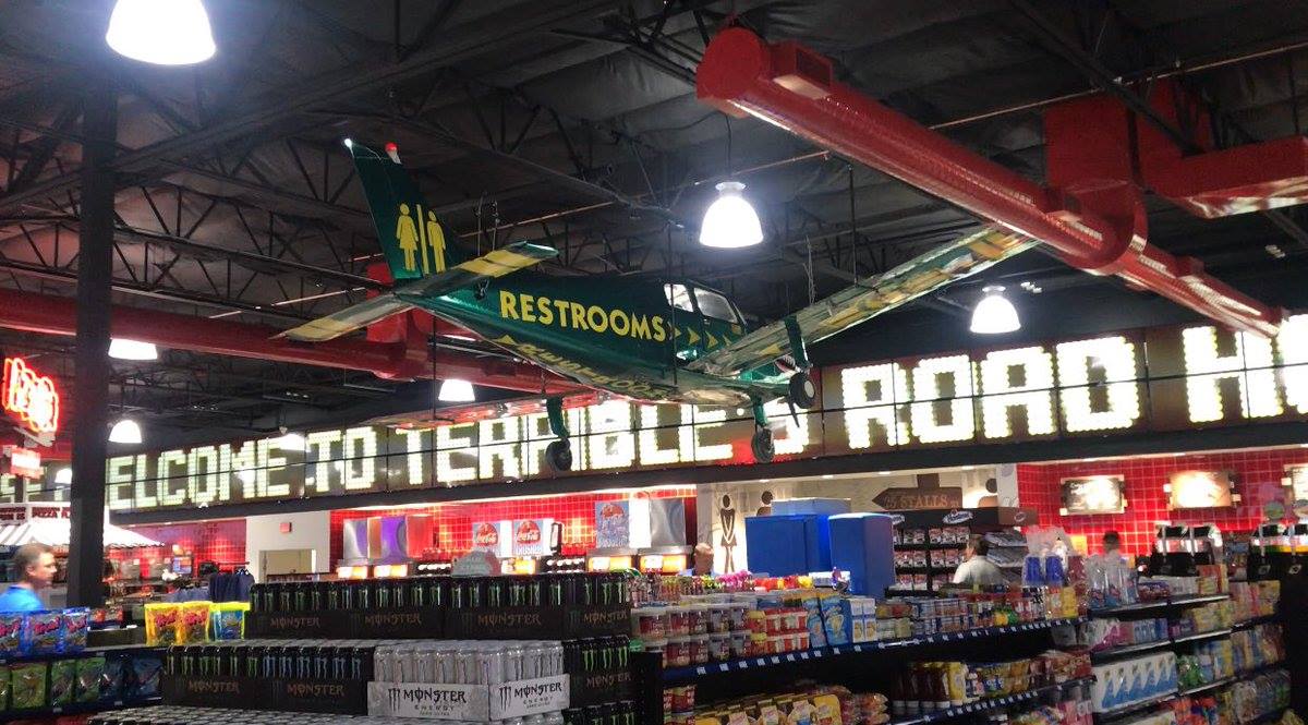 Первое, что видят посетители магазина при входе - это самолет, парящий в воздухе. Всего для декора интерьера установлено три одномоторных самолета, в разных частях магазина, полноразмерный автомобиль NASCAR, внедорожник и 4-метровая фигура Бигфута.