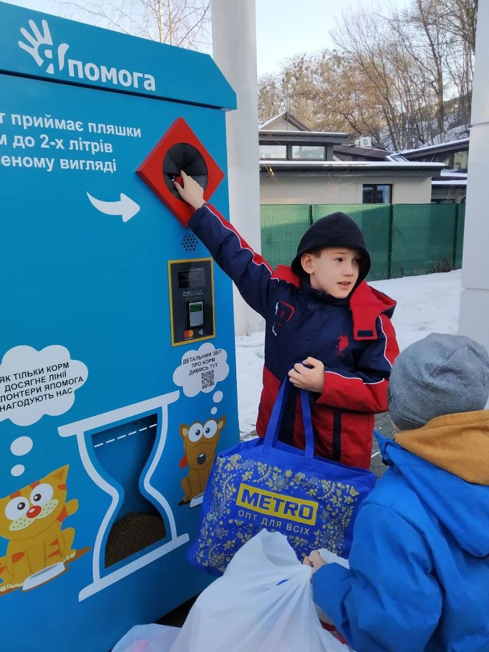 Как только бокс наполняется полностью – волонтеры получают сообщения и разносят пищу уличным животным, а собранный пластик отправляется на переработку. Также, можно просто перечислить 20 грн на корм с помощью терминала в одно касание.
