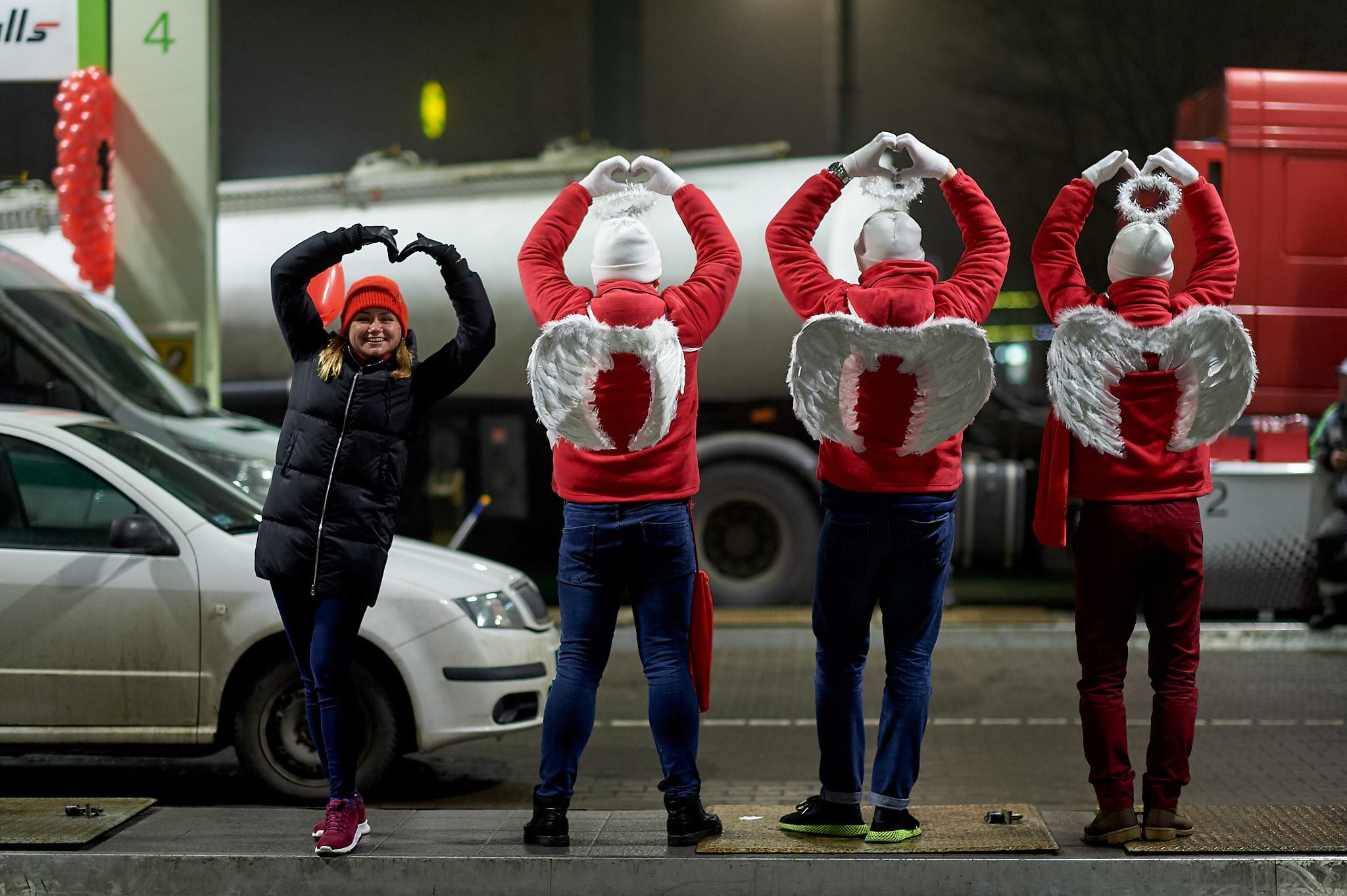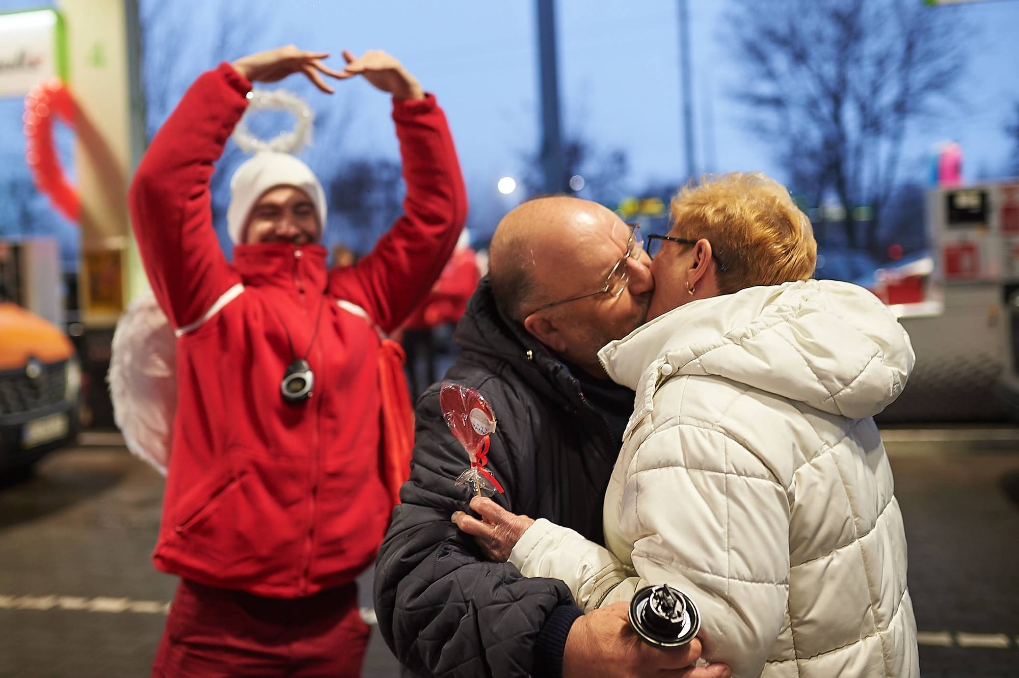 14 февраля на одном из автозаправочных комплексов ОККО в Киеве, компания необычно поздравляла своих клиентов с Днем святого Валентина. Каждый автомобилист, который с 17 до 21 часа приехал на АЗС, мог поцеловать свою вторую половинку на протяжении 60 секунд и получить гарантированную скидку на топливо.