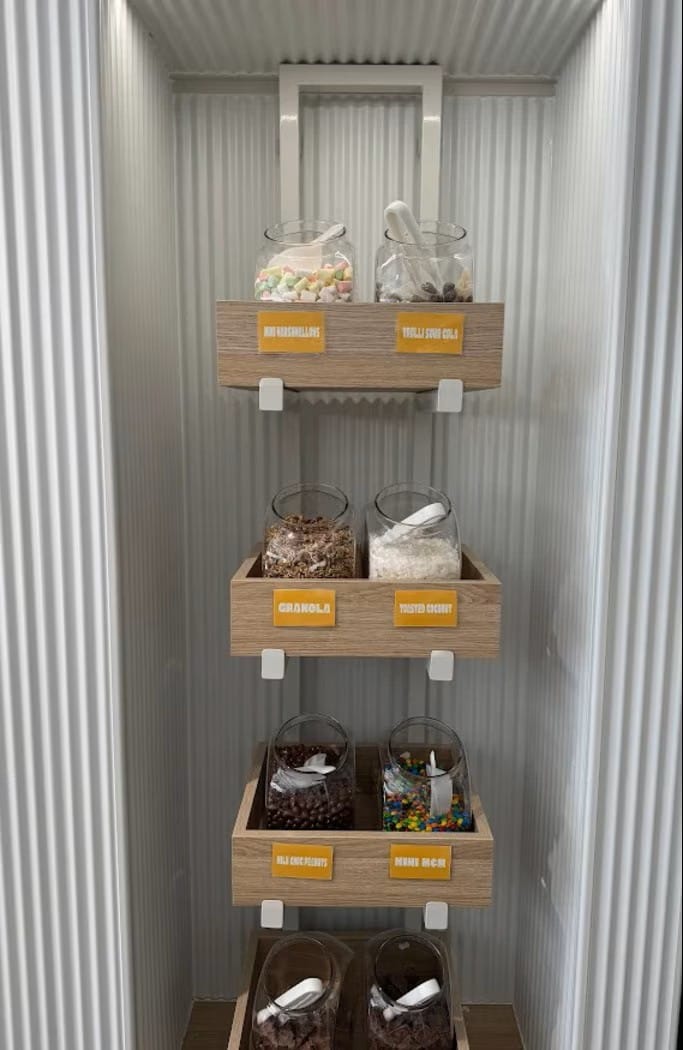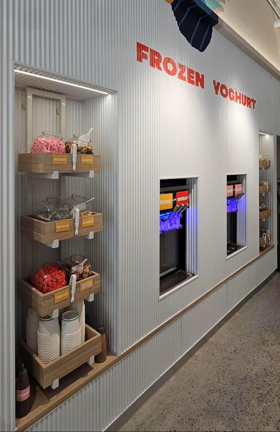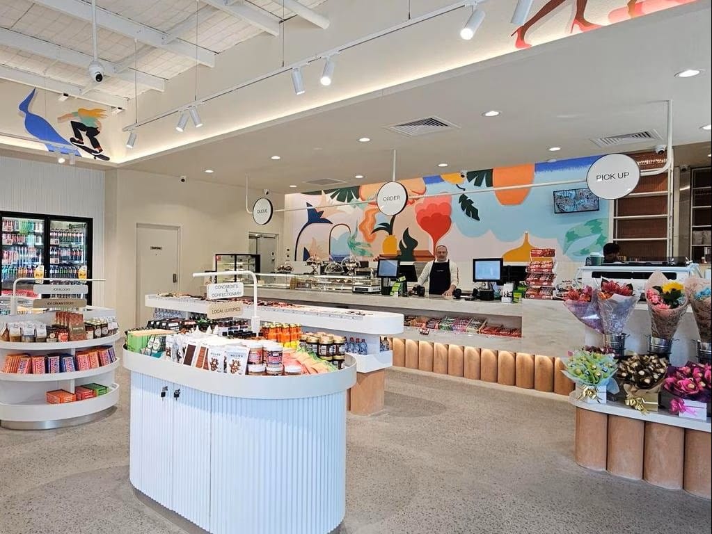 Сиднейская станция удивляет местных посетителей крафтовыми продуктами и зоной замороженного йогурта (четыре вкуса и топпинги) в формате самообслуживания. В кассовой зоне красуется декоративная настенная роспись с яркими цветами — один из акцентов, сразу притягивающий внимание.