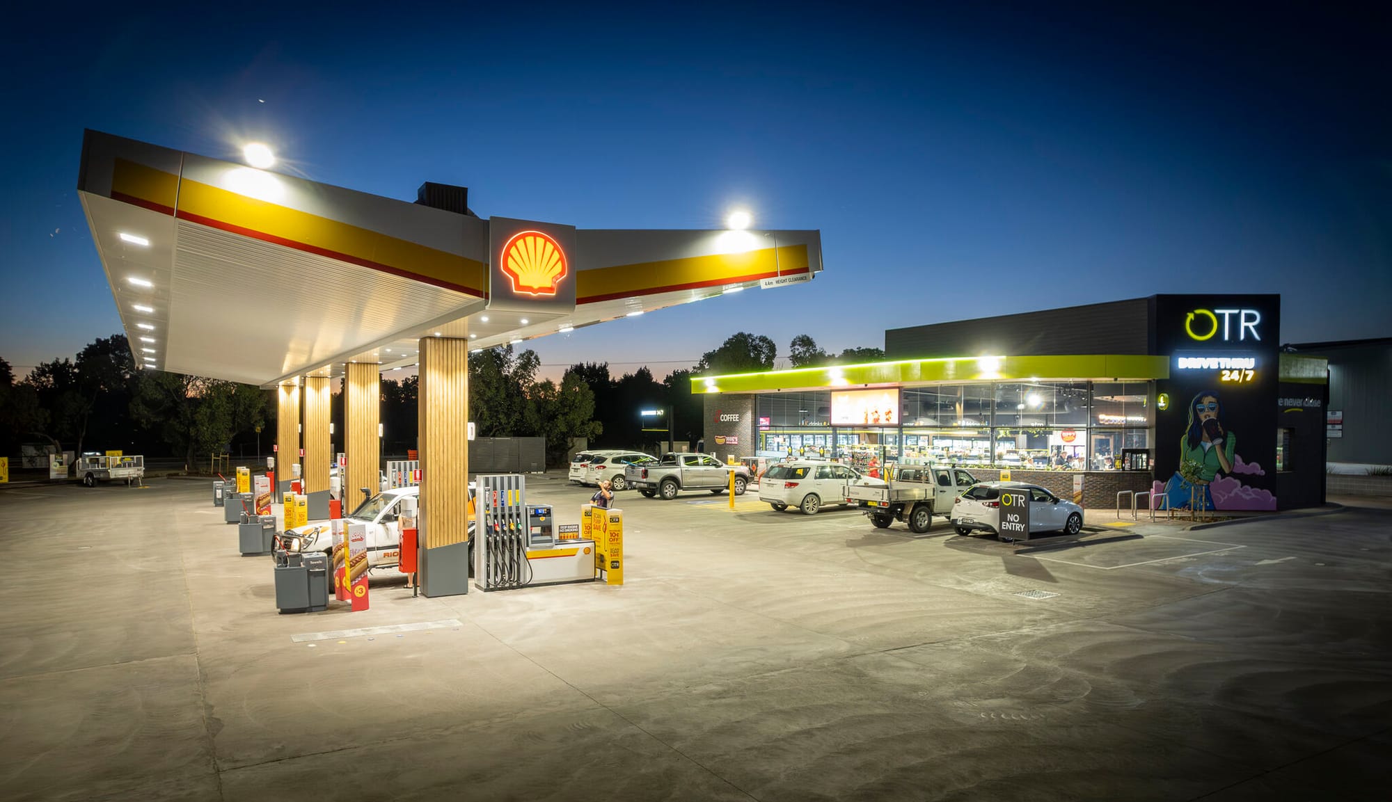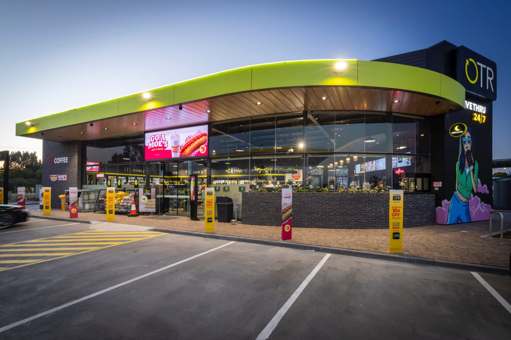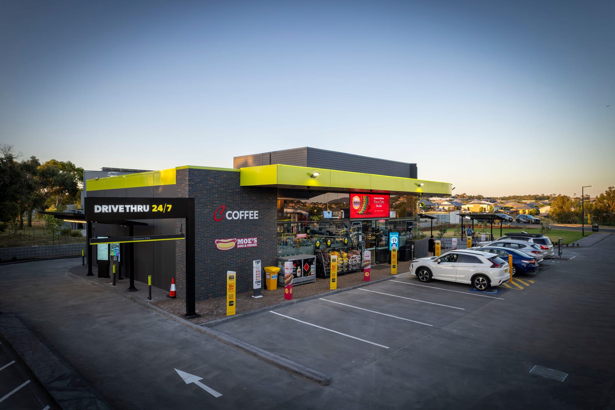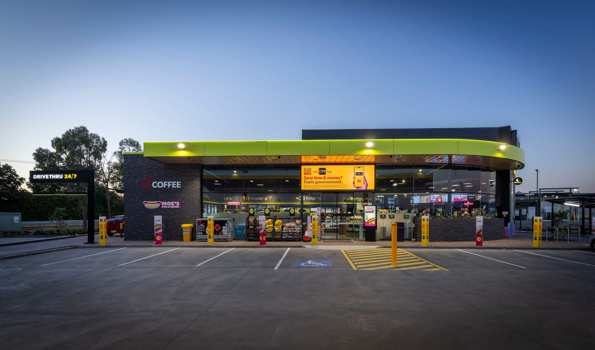 Переместимся в Австралию на новую автозаправочную станцию OTR в Гоулберн. Как заявляется компанией — образец проектирования с учётом потребностей клиентов в стране. От круглосуточного drive-thru и полноценного магазина до восьмиполосной зоны заправки. Рассмотрите фотографии — там есть очень интересные детали как снаружи, так и внутри.