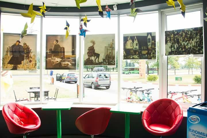 В течение двух месяцев на шести заправках в Минске всем клиентам предоставляется шанс познакомиться с современным искусством. 46 репродукций картин 15 белорусских художников теперь можно увидеть прямо на АЗС А-100.