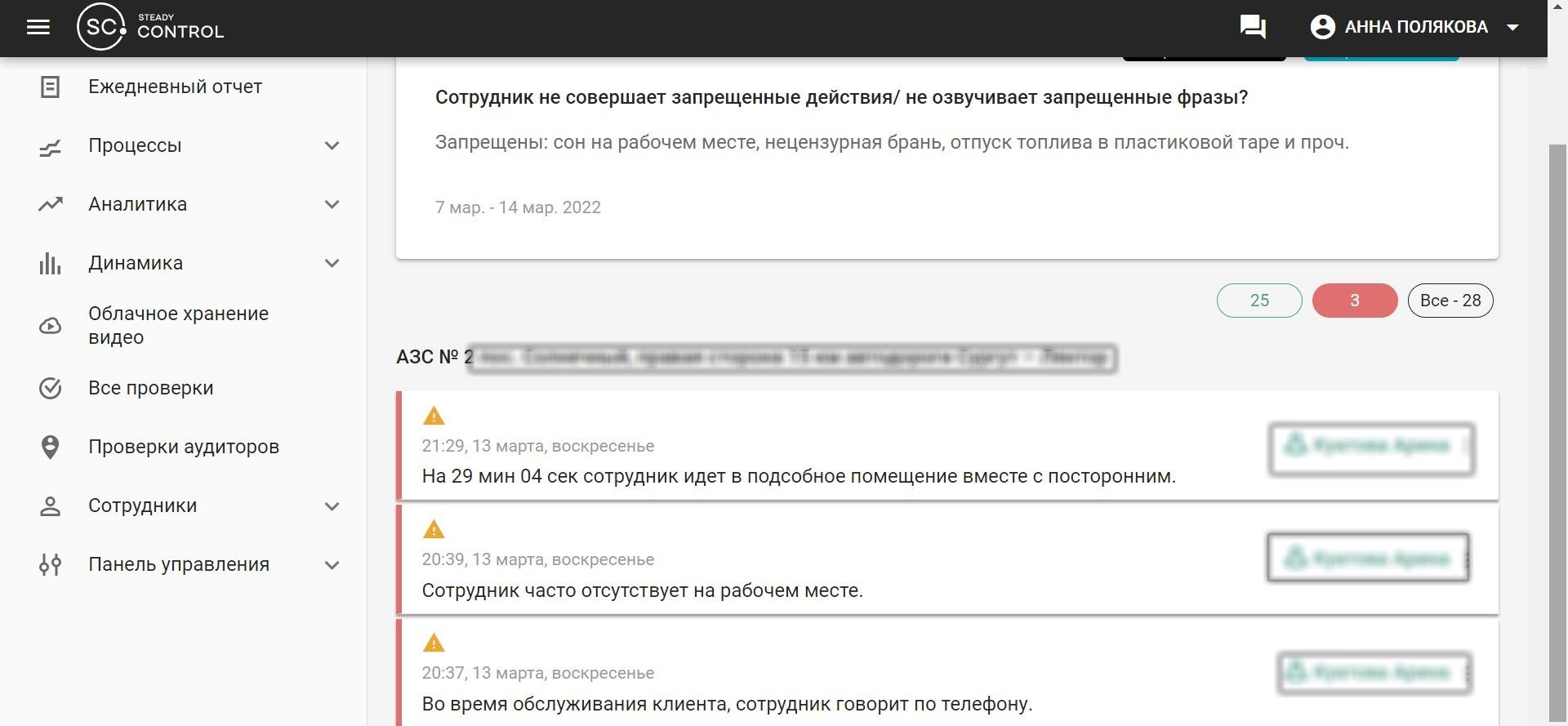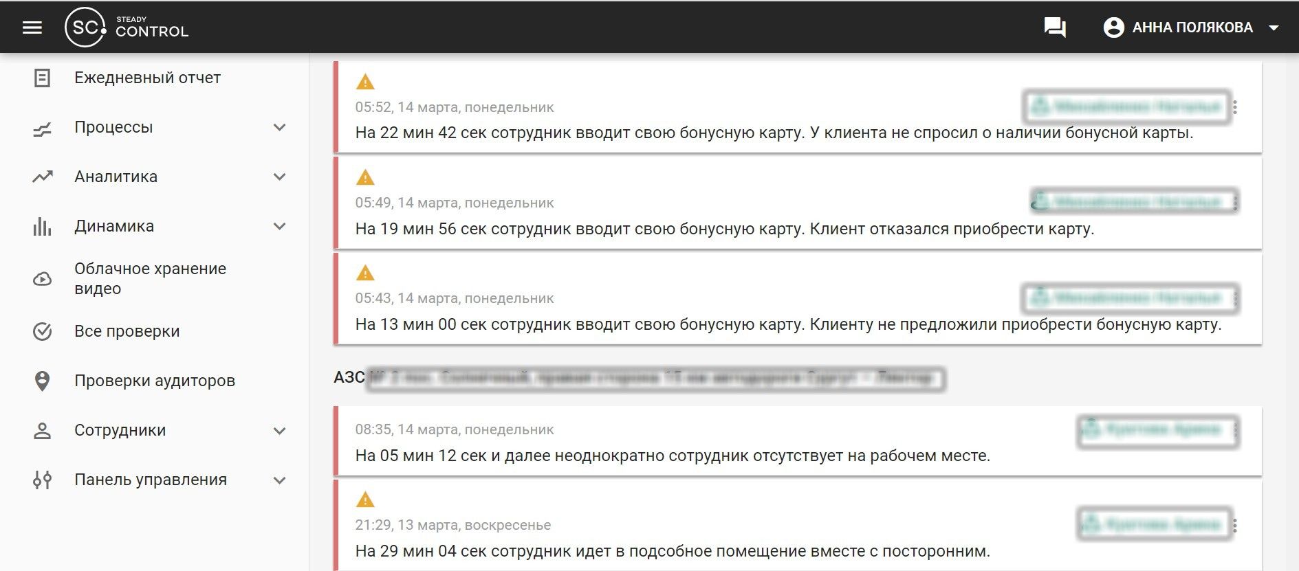Система контроля и управления SteadyControl повышает эффективность персонала на каждой АЗС. Она объединила в себе искусственный интеллект, последние технологии сбора и аналитики данных с современными практиками менеджмента. Результаты работы – близкое к 100% выполнение стандартов работы персоналом автозаправочных станций. Это приводит к росту среднего чека и получению дополнительной прибыли. SteadyControl сама находит и анализирует нарушения сотрудников, а также определяет процессы, где бизнес должен зарабатывать больше и совершенствует их.