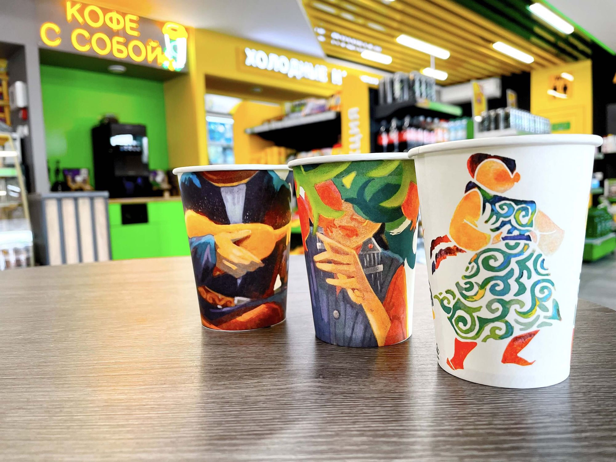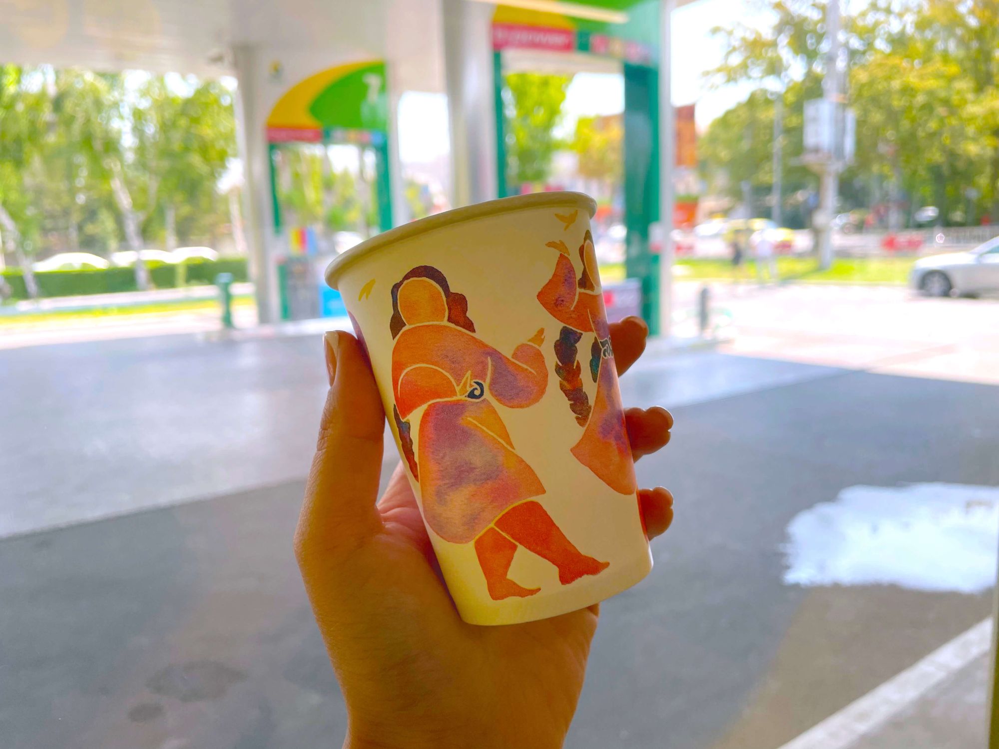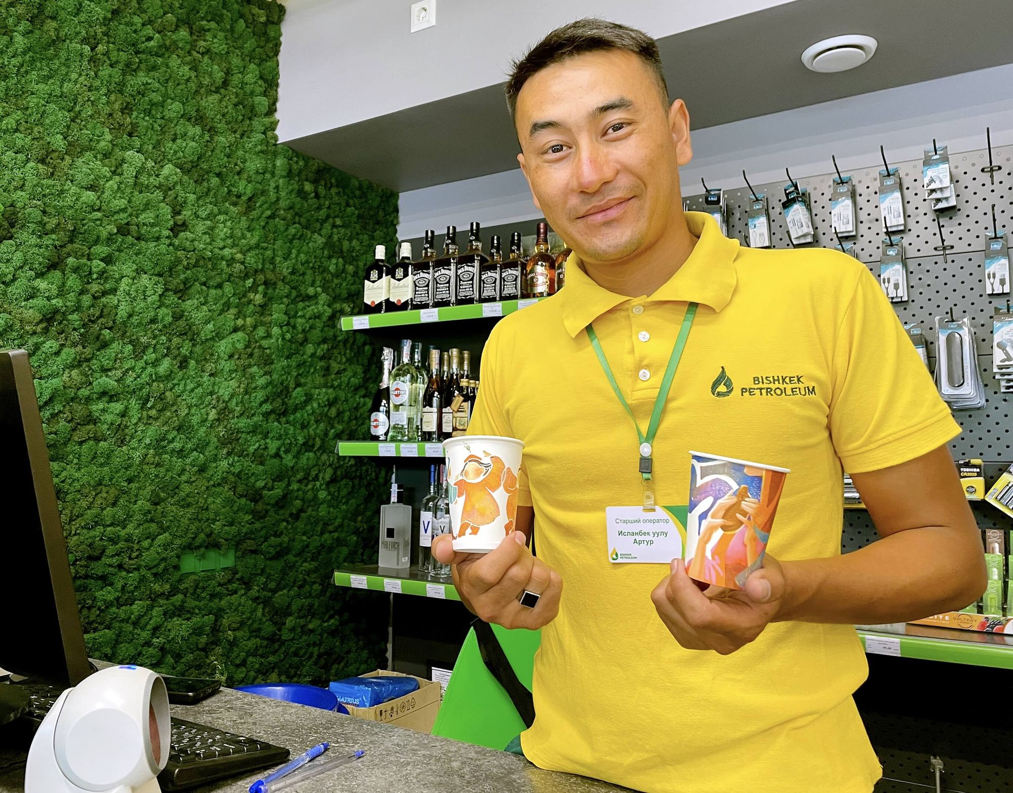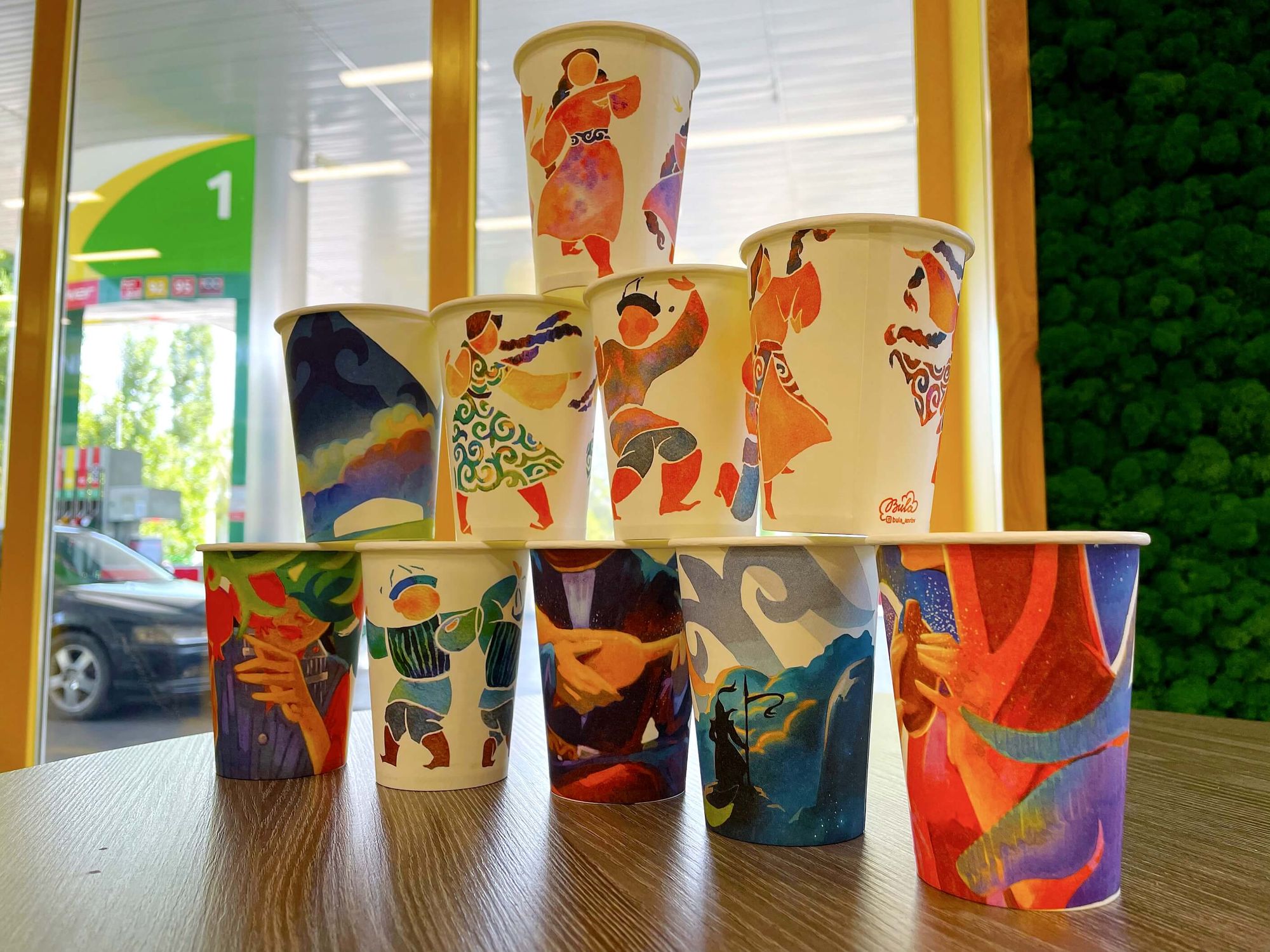 В сети АЗС Bishkek Petroleum (Кыргызстан) в продажу поступили необычные бумажные стаканчики в национальном стиле. На картинках изображены природа, богатырь из героического эпоса – Манас, национальная одежда и музыкальные инструменты кыргызского народа.