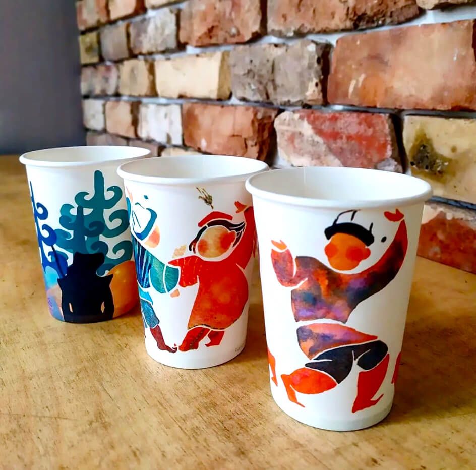 Рисунки сделал дизайнер Bula An. (Вата Гранатов). Производителями является ОСОО «ECO CUP» – это предприятие специализируется на изготовлении экологически чистых бумажных стаканов в Кыргызстане.