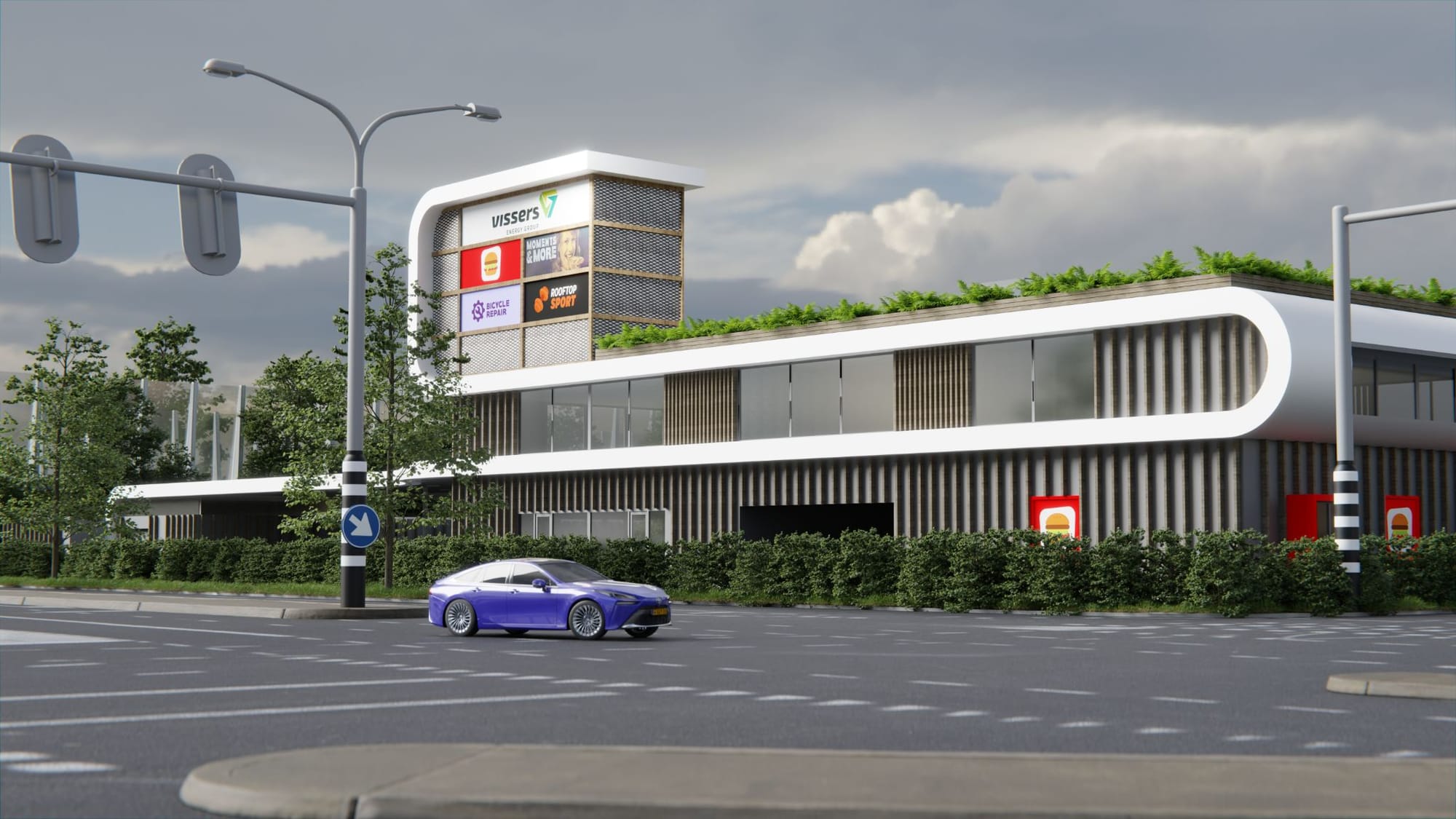 Vissers Energy Group создает здесь АЗС нового поколения, которая объединяет различные виды транспорта и предлагает современные услуги. Этот проект станет настоящими «Воротами города» – визитной карточкой, поэтому его внешний облик и функциональность тщательно продуманы.
