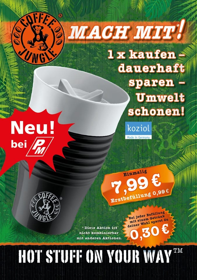 Брендированную кружку емкостью 400 мл, до 31 октября 2019 года можно приобрести по специальной цене 7,99 евро. После окончания акции она будет стоить 9,99. При этом первый #кофе идет в подарок. В будущем при покупке любого горячего напитка можно экономить на каждой чашке 0,30 €.