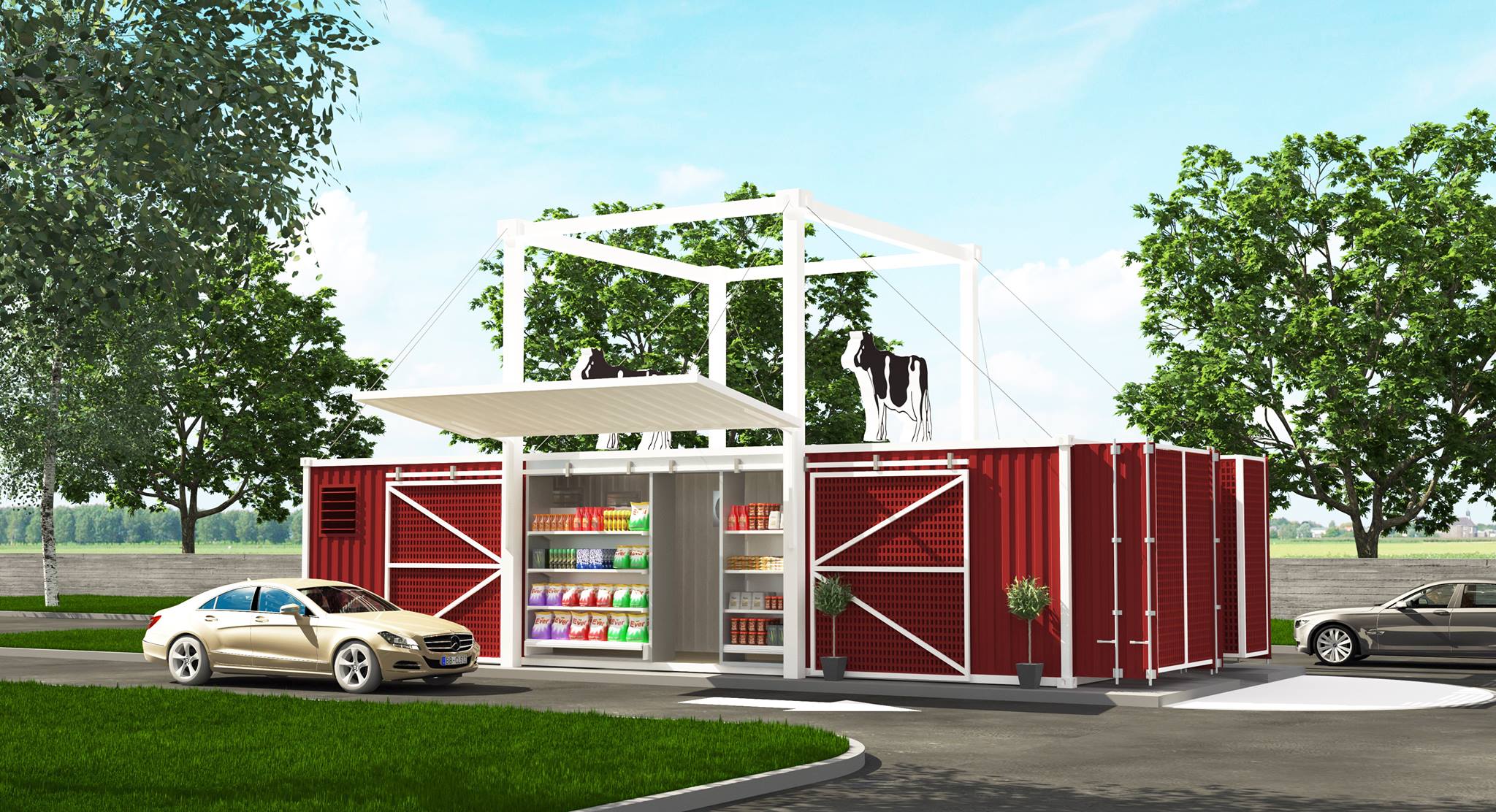 В мае компания Farm Stores откроет в новом формате и первый в штате Луизиана магазин товаров повседневного спроса, который построен из контейнеров. Он состоит из двух б/у транспортных контейнеров, окрашенных в фирменный красный цвет с белыми полосами, а его площадь составляет 60 м2.