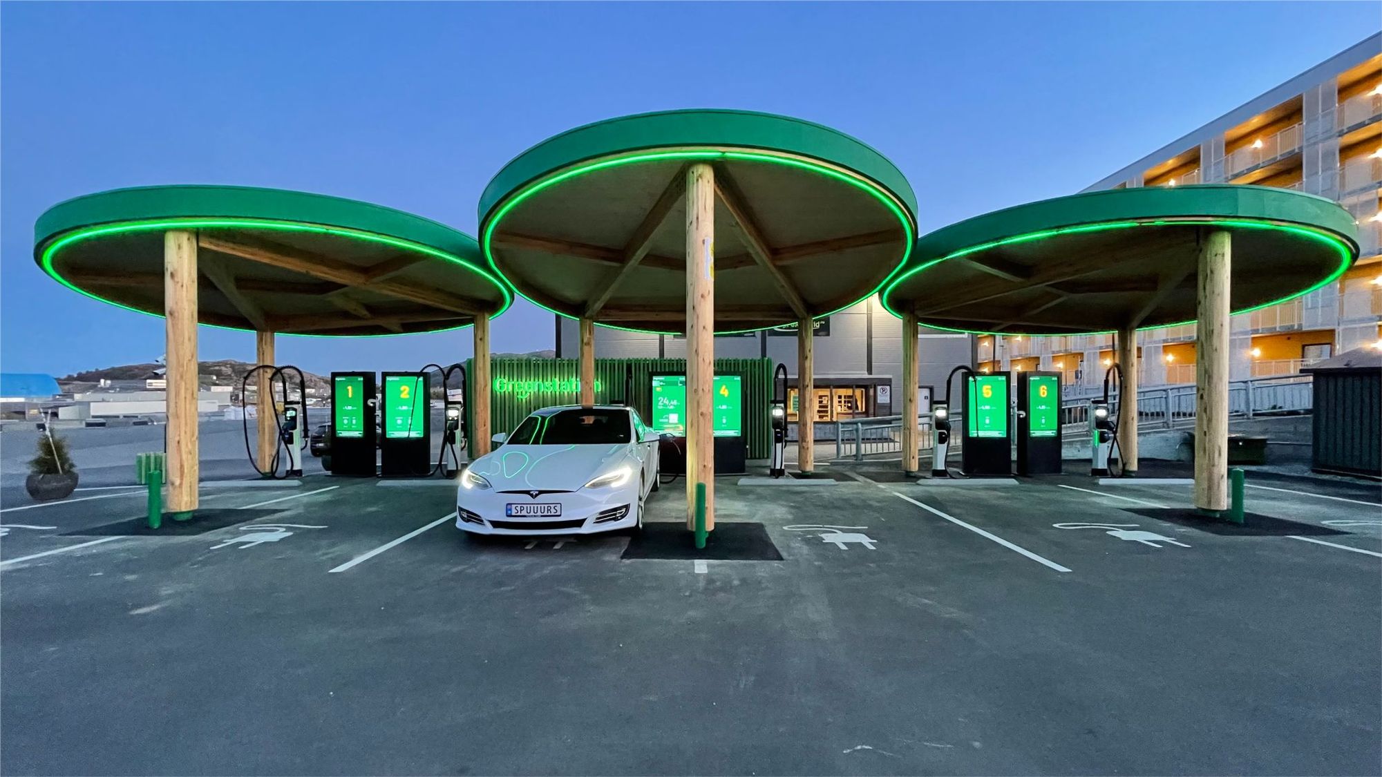 Планируется, что все зарядные станции Greenstation в Норвегии будут иметь ценовую мачту. Прежде всего, это зарядная станция в Страуме, где уже установили новое оборудование. Остальные станции последуют за ее примером.