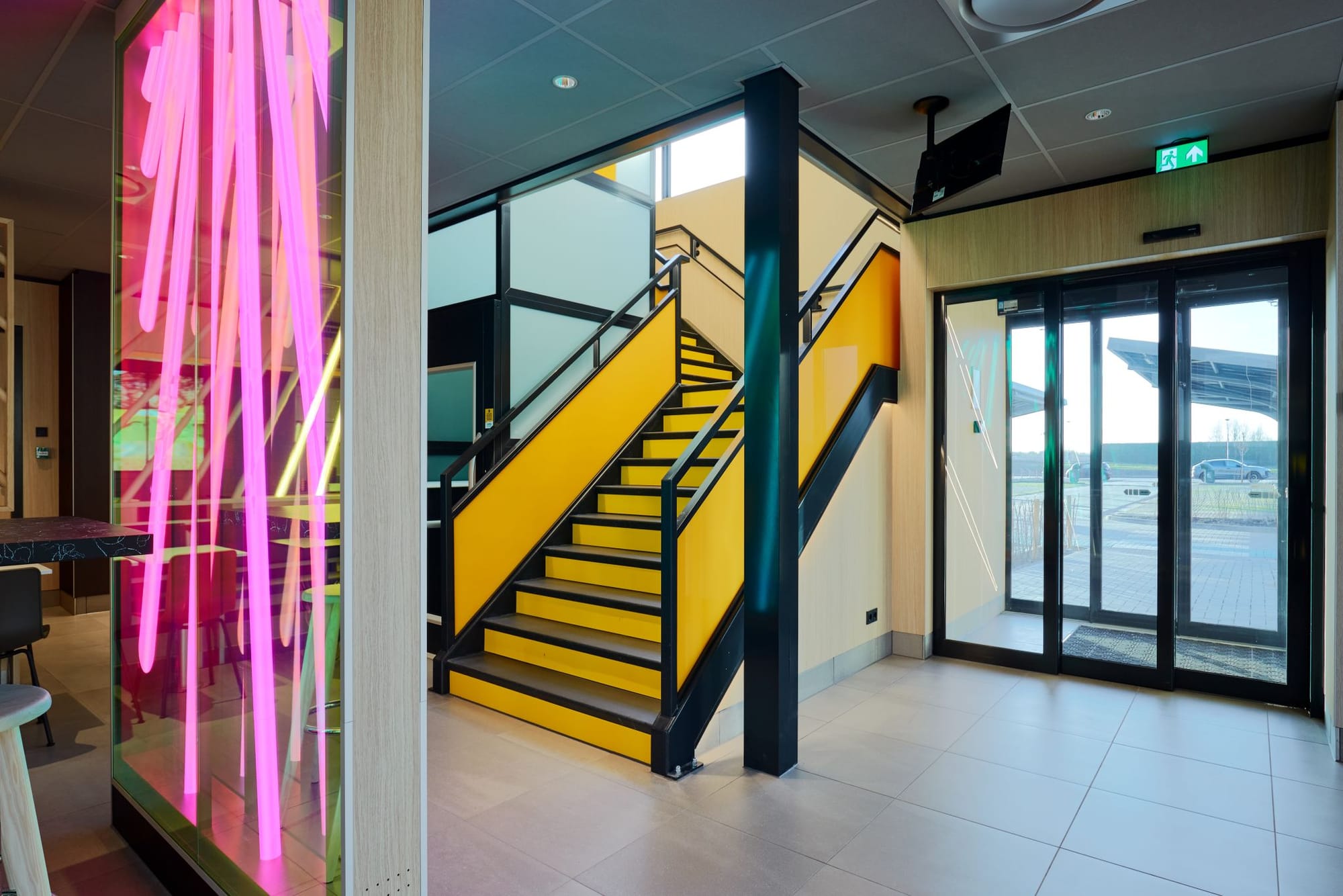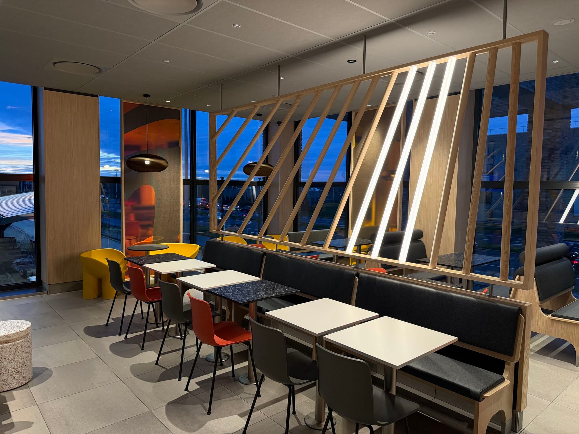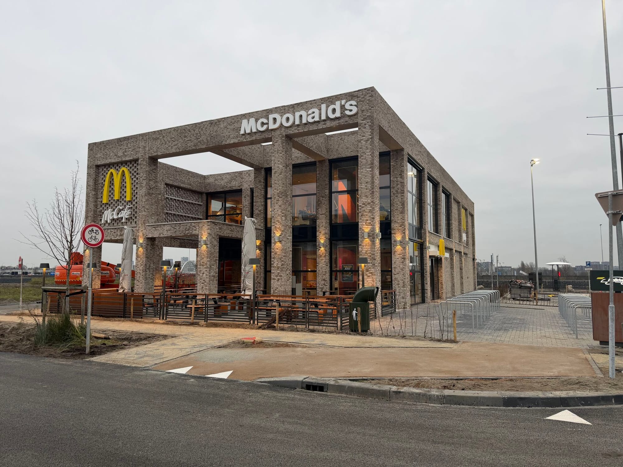Вдоль автомагистрали A2 в Утрехте, на месте, где летом находилась песчаная площадка, всего за 20 недель был построен новый ресторан McDonald’s. Объект стал пилотным проектом и позиционируется как самый устойчивый ресторан компании в Нидерландах. Его особенность заключается прежде всего в энергетическом решении, реализованном в условиях сетевой перегруженности.