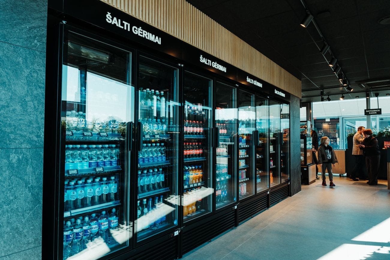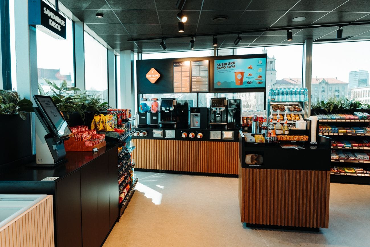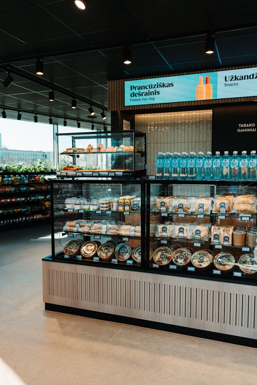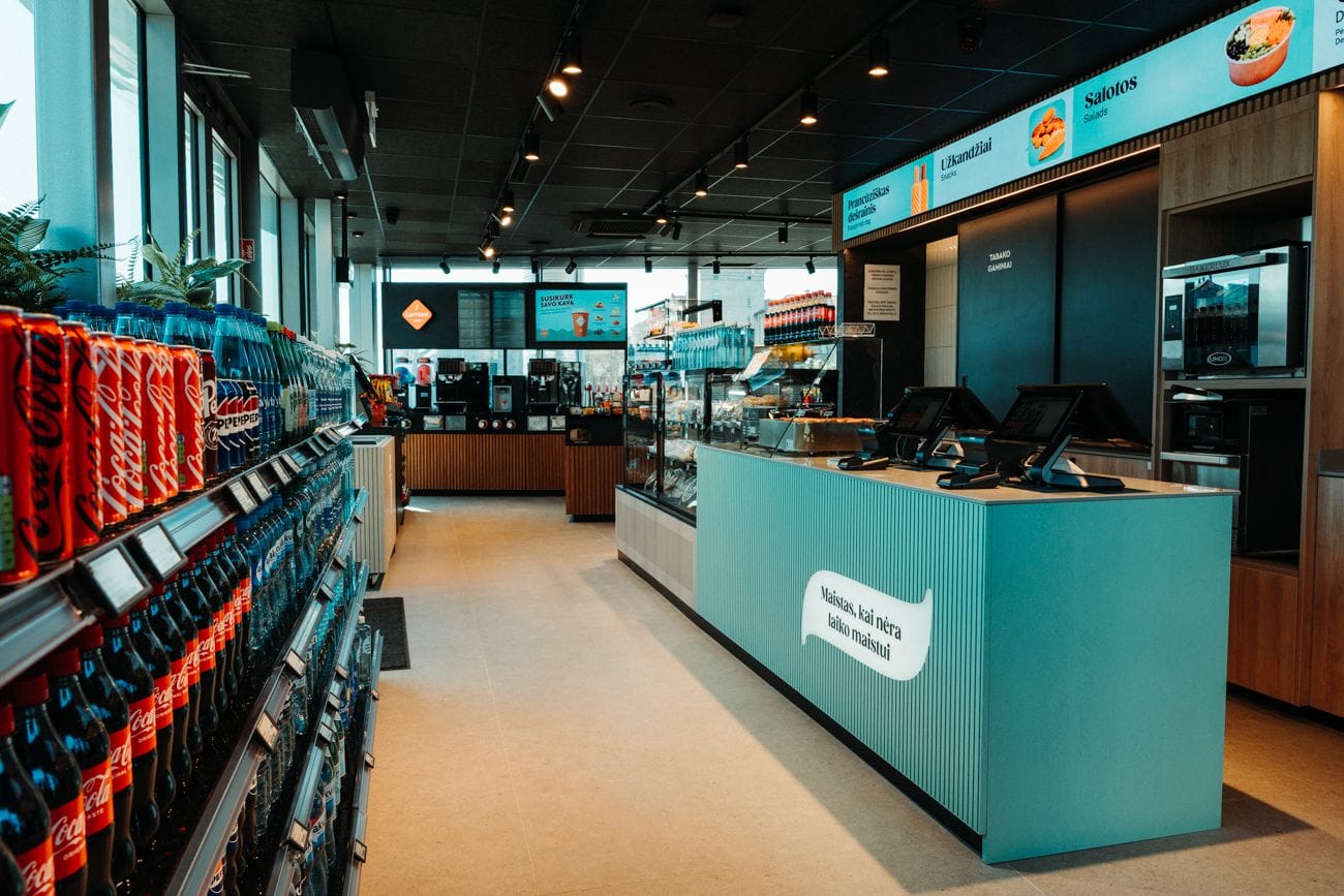 На примере нового магазина Narvesen в Вильнюсе хорошо видно, как через акцентный цвет и формат цифровых носителей в разных зонах выстраивается приоритет восприятия.