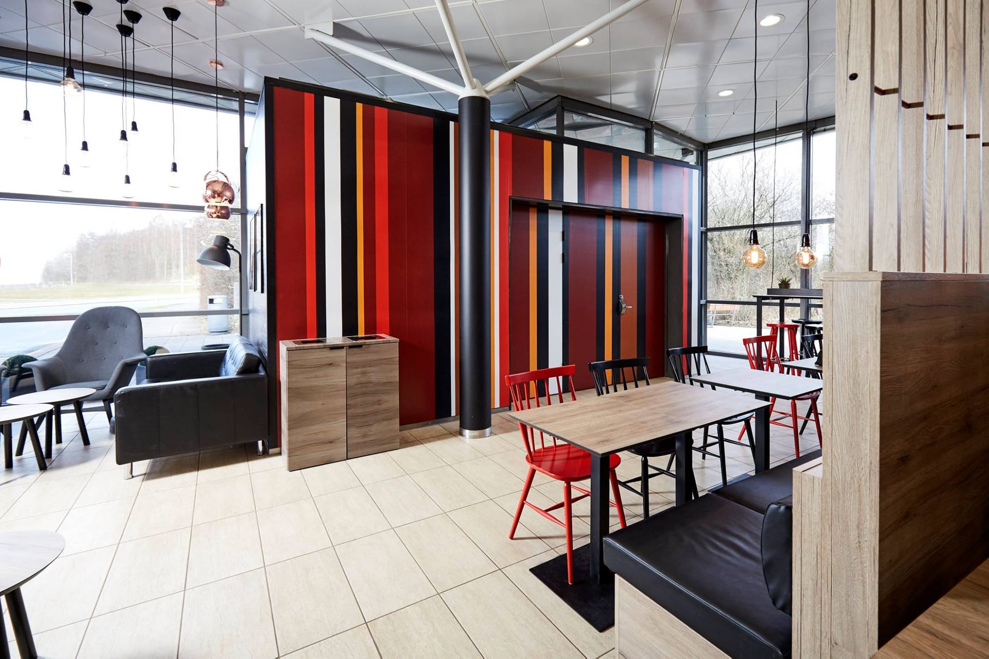 Три магазина были полностью модернизированы в этом году на станциях Circle K в городе Вайле и окрестности Оденса. Общий дизайн новых закусочных выполнен в теплых тонах и цветах светлого дерева. В уютной обеденной зоне можно комфортно отдохнуть и насладиться едой, независимо от того с семьей вы, с друзьями или в одиночку.