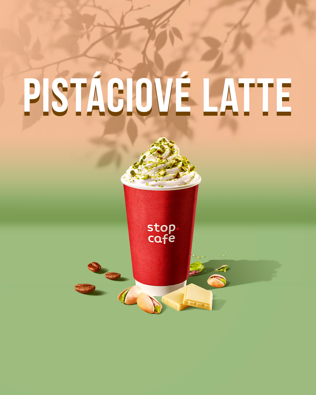 - Фисташковое латте — кремовый латте со вкусом фисташки, взбитыми сливками и дроблёными фисташками.