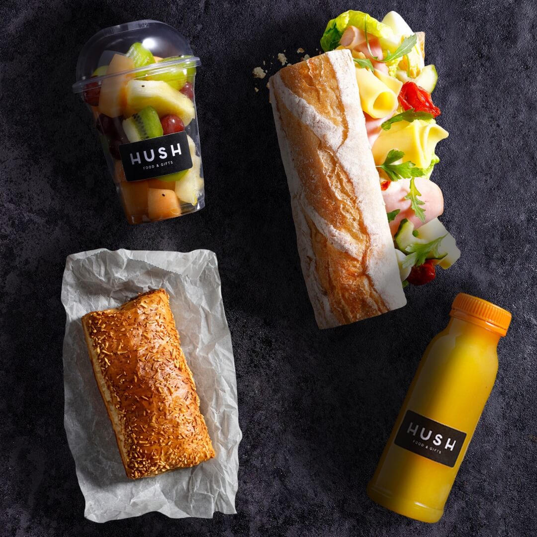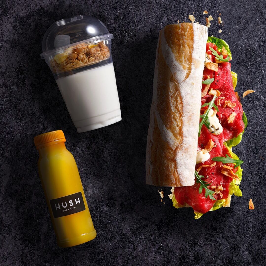 С помощью приложения можно купить за небольшую цену Magic Box с едой, которая была бы выброшена, но при этом является качественной и вкусной. Узнать, что именно в пакете нельзя, пока он не будет куплен и раскрыт. Например, багет с ребрышками без костей, соусом BBQ, болгарским перцем, рукколой или сэндвич с сыром бри, ветчиной серано, рукколой, медом, кедровыми орешками приготовили слишком много, потому что ожидали большего количества людей и, следовательно, эти блюда остались на витрине магазина Hush.