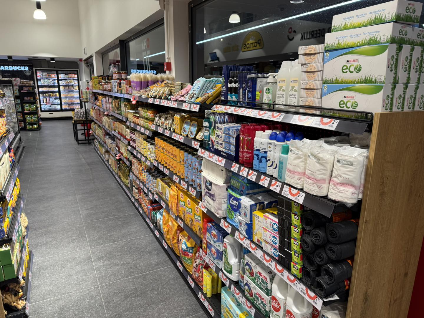 Магазин в Дерлейке с торговой площадью 124 м² предлагает широкий ассортимент из более чем 1500 товаров и ориентирован не только на повседневные покупки, но и на потребление на месте — кофе, завтрак или обед. Время работы торговой точки: с понедельника по пятницу — с 4:00 до 20:00, в выходные — с 6:00 до 20:00.