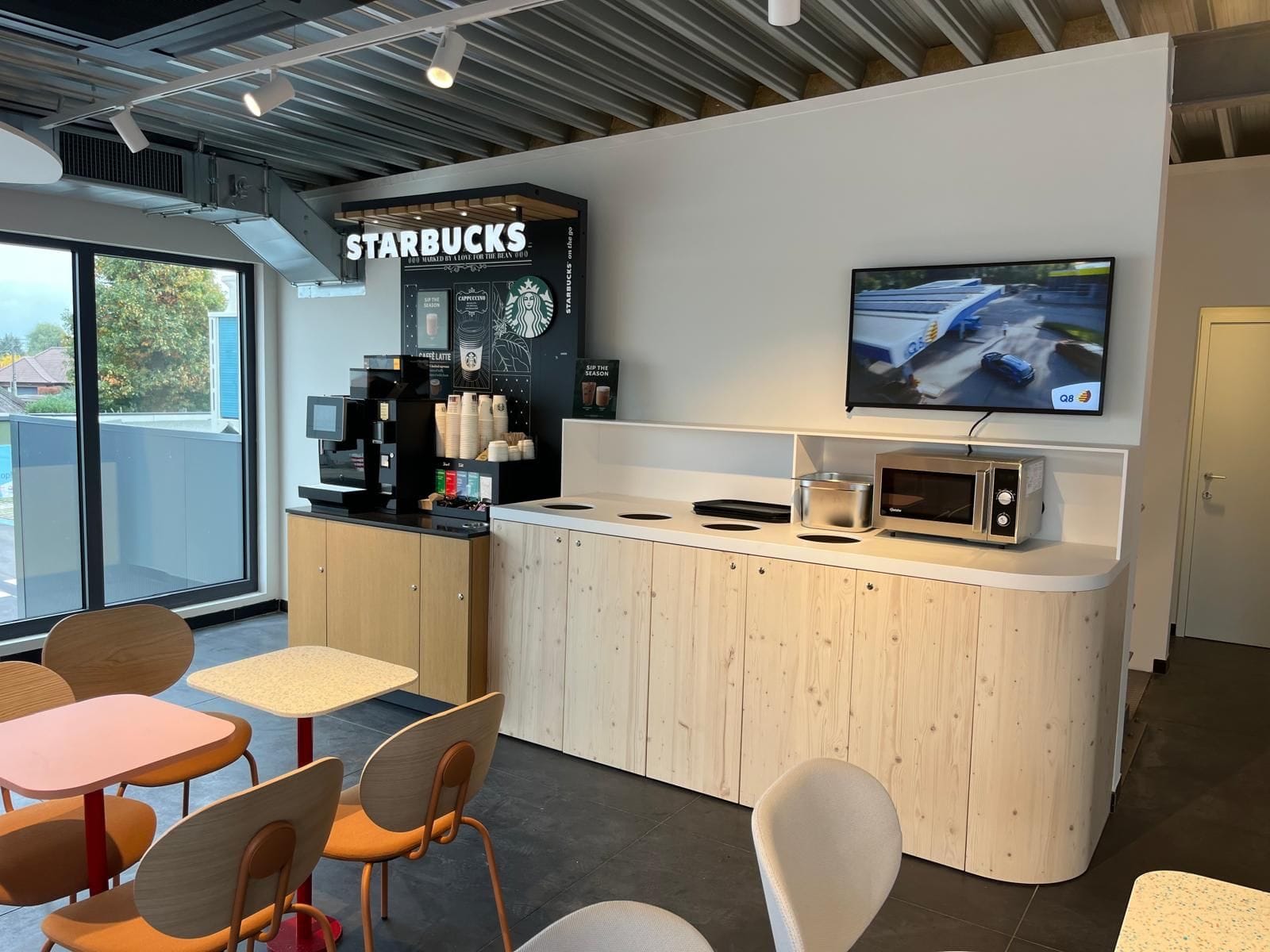 Свежий пример из Бельгии — концепция Shop & Go, магазин интегрирован с АЗС Q8, а также брендами Panos (сеть пекарен и сэндвич-баров) и Starbucks. Ключевая особенность новой точки — привлекательная зона отдыха на 40 посадочных мест, где посетители могут сделать кофе-брейк, пообедать или провести деловую встречу.