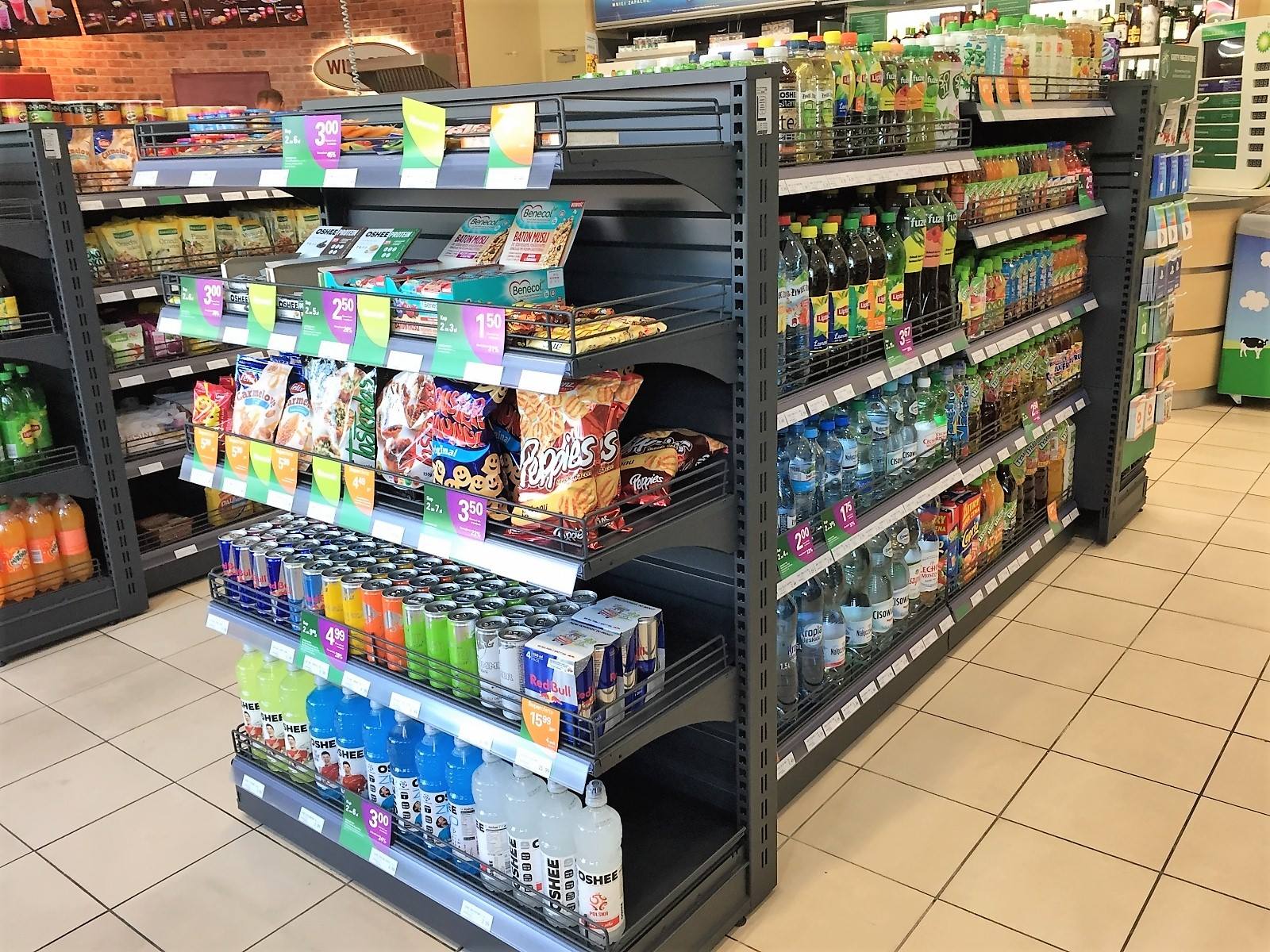 Новые стеллажи позволяют выкладывать большее количество товара в торговом зале. Их цветовая гамма адаптирована к измененному дизайну внутри магазина. Производитель оборудования - польская компания Mago.