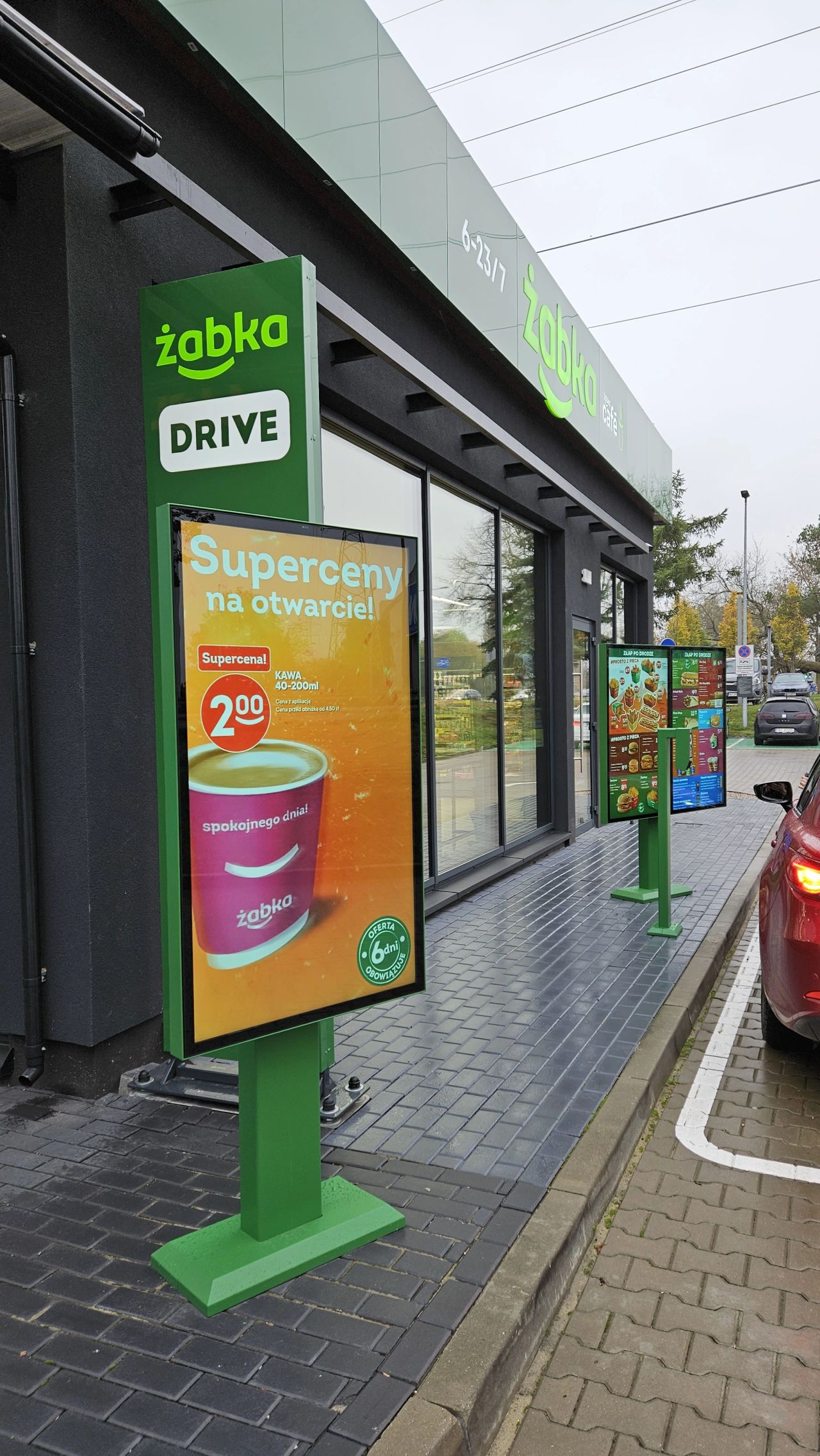 Самая большая в Польше сеть магазинов формата «у дома» Żabka открыла свой первый магазин для водителей. Żabka Drive работает по тому же принципу, что и McDrive в McDonald's или KFC Drive Thru, чтобы сделать покупку не нужно выходить из машины.