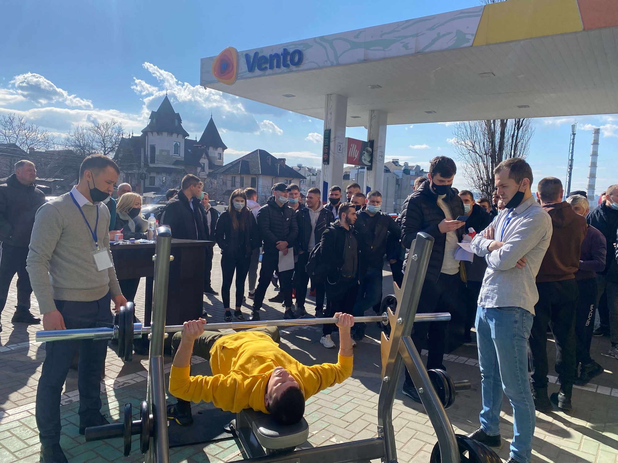 5-й год подряд сеть АЗС Vento 23 февраля организовывает «День спорта вместе с Vento». В этом раз участники мероприятия могли бесплатно заправить свои автомобили на 10 литров любого топлива выполнив жим штанги лежа.